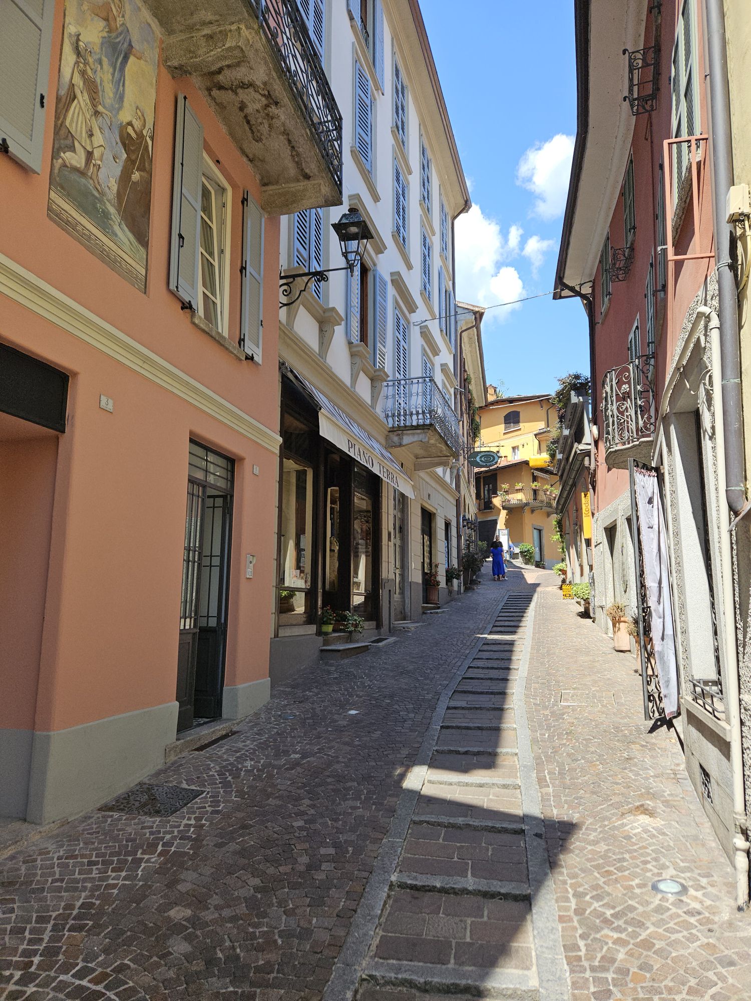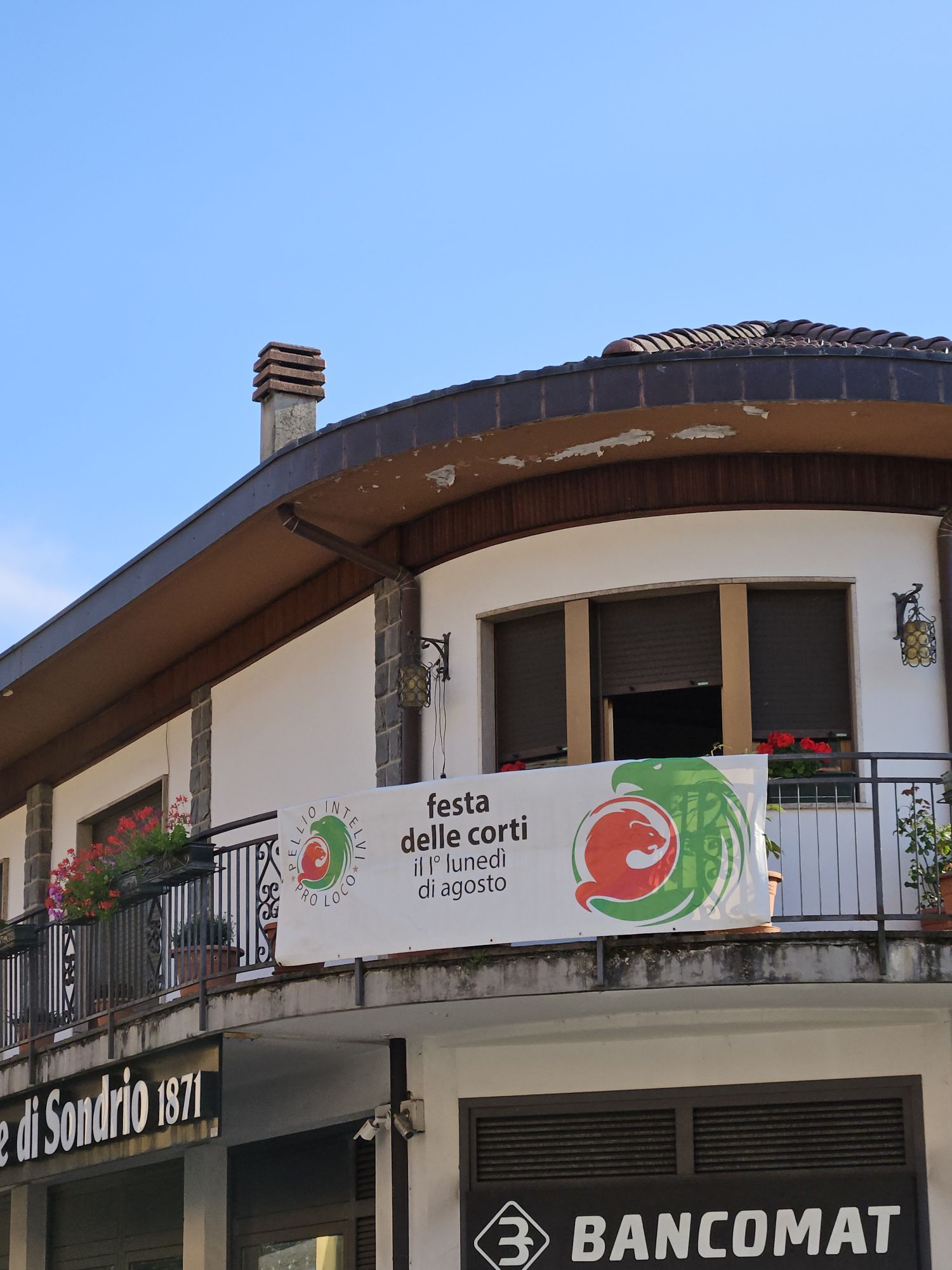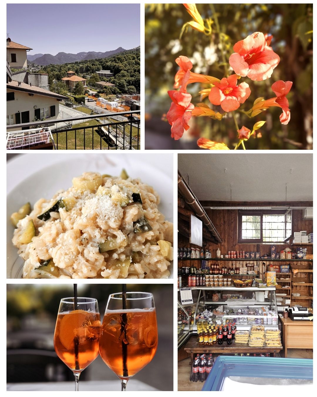 Ein Blick in den einzigen Laden von Pellio Sopra, der kleine Alimentari macht immer mal wieder zu und findet dann doch neue Betreiber, aktuell hat er wohl wieder geöffnet.Die kleine Dorfpiazza mit der einzigen Bar im Ort, hier bekommt man noch alle Getränke zu sehr akzeptablen Preisen. Normalerweise ist hier wenig los, aber rund um Feragosto, wenn die ganzen Mailänder aus der Stadt flüchten, ist hier die Hölle los.Ausblick vom Balkon der Ferienwohnung. Sooo schön.Neuester Trend auf Tiktok, kleine Tippelschritte und ein entspanntes Lachen sollen sehr natürliche Bilder ergeben 😂 – hier aufgenommen in der schmalsten Gasse von Pellio.Abendritual, Aperitiv im Nachbarort San Fedele. Im lokalen Tabacchi habe ich mich mit italienischen Wohnzeitschriften eingedeckt. Sind hier recht preiswert und ich mag die gerne anschauen.Hinweisbanner fuer das Highlight des Jahres in Pellio Sotto, die Festa delle Corti. Jedes Jahr Anfang August. Da waren wir auch schon zwei mal und es ist einfach toll. Alle Innenhöfe habe geöffnet und man bekommt in jedem ein anderes preiswertes Essen. Dazu eine tolle Stimmung. Leider sind wir dann nicht mehr hier.San FedeleRisotto alla Kai mit Lauch und Zucchini. Ein absolutes Gedicht.Abends auf dem Balkon mit orange leuchtendem Vollmond. Wie schön.