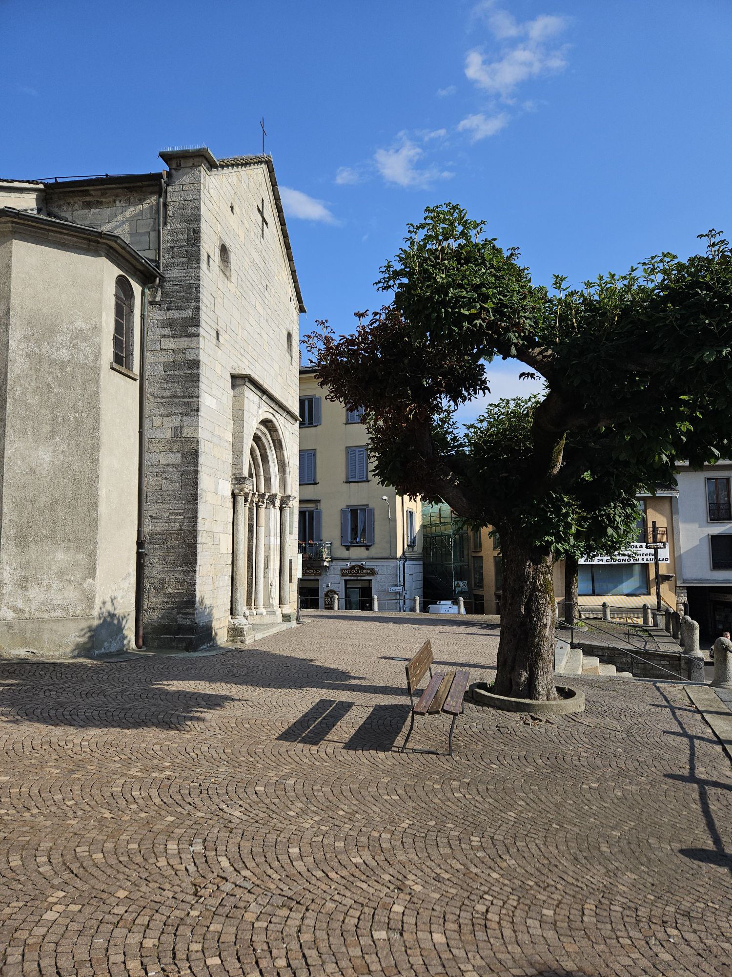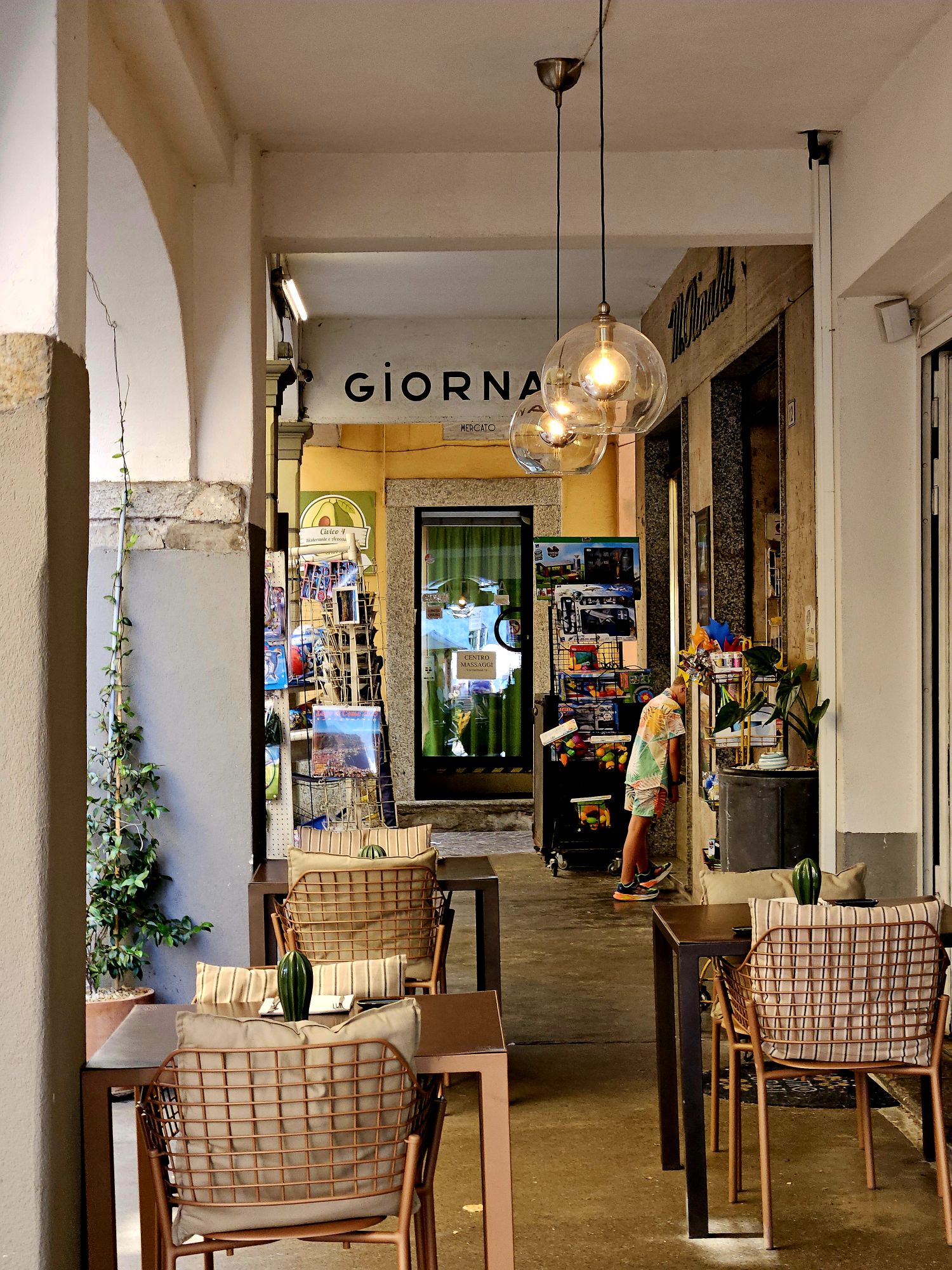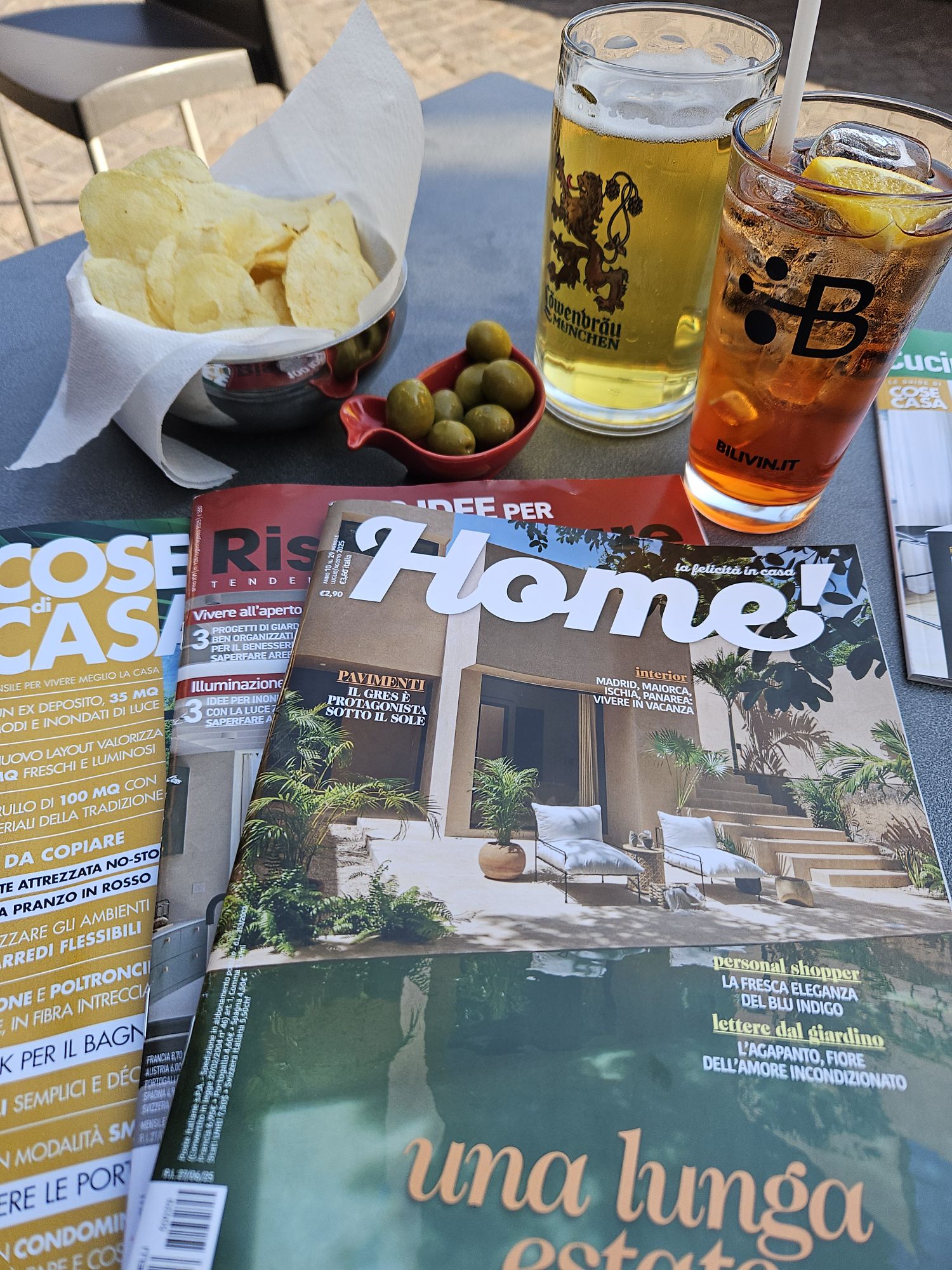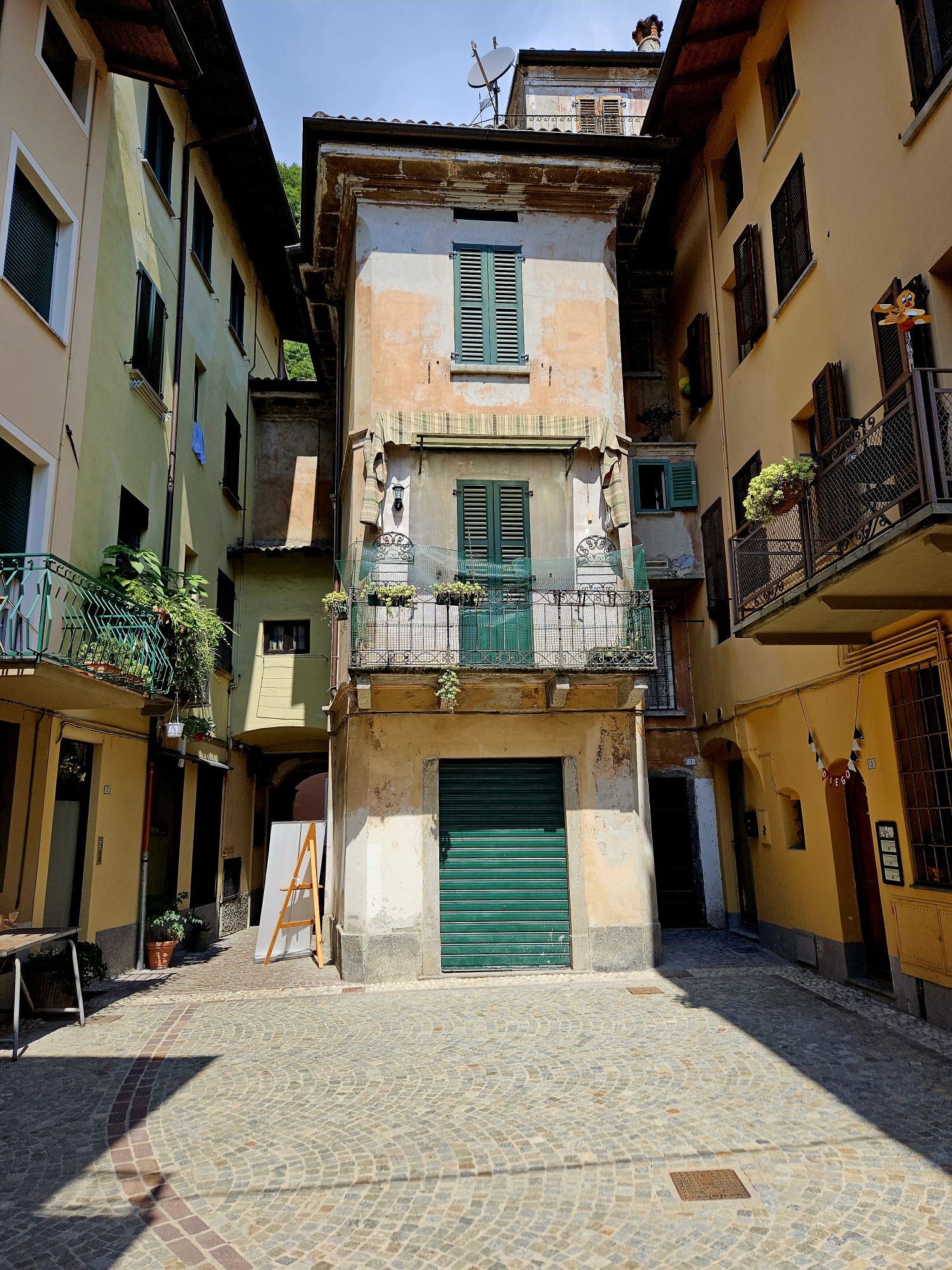 Ein Blick in den einzigen Laden von Pellio Sopra, der kleine Alimentari macht immer mal wieder zu und findet dann doch neue Betreiber, aktuell hat er wohl wieder geöffnet.Die kleine Dorfpiazza mit der einzigen Bar im Ort, hier bekommt man noch alle Getränke zu sehr akzeptablen Preisen. Normalerweise ist hier wenig los, aber rund um Feragosto, wenn die ganzen Mailänder aus der Stadt flüchten, ist hier die Hölle los.Ausblick vom Balkon der Ferienwohnung. Sooo schön.Neuester Trend auf Tiktok, kleine Tippelschritte und ein entspanntes Lachen sollen sehr natürliche Bilder ergeben 😂 – hier aufgenommen in der schmalsten Gasse von Pellio.Abendritual, Aperitiv im Nachbarort San Fedele. Im lokalen Tabacchi habe ich mich mit italienischen Wohnzeitschriften eingedeckt. Sind hier recht preiswert und ich mag die gerne anschauen.Hinweisbanner fuer das Highlight des Jahres in Pellio Sotto, die Festa delle Corti. Jedes Jahr Anfang August. Da waren wir auch schon zwei mal und es ist einfach toll. Alle Innenhöfe habe geöffnet und man bekommt in jedem ein anderes preiswertes Essen. Dazu eine tolle Stimmung. Leider sind wir dann nicht mehr hier.San FedeleRisotto alla Kai mit Lauch und Zucchini. Ein absolutes Gedicht.Abends auf dem Balkon mit orange leuchtendem Vollmond. Wie schön.
