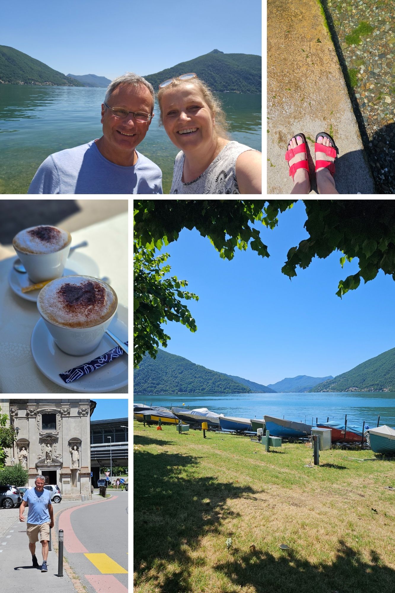 Nach zwei Stunden entspannter Fahrt, bei der der Tempomat mehr gearbeitet hat als ich die ganze Woche, kam das nächste Highlight: der Luganer See. Und wie es sich für echte Roadtrip-Profis gehört, machten wir Pause. Direkt am Wasser, Cappuccino in der Hand, Sonnenbrille auf der Nase – man hätte uns für Influencer halten können, wären da nicht die Chipskrümel auf dem Pulli gewesen.