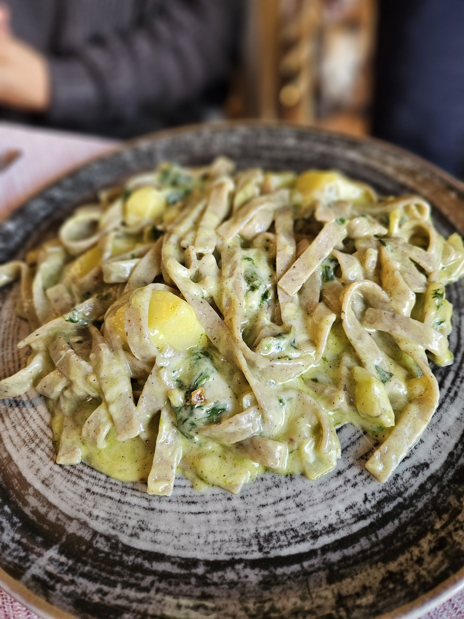 Hier noch eine Spezialität aus dieser Gegend, die Pizzoccherie alla Valtellina. Kai macht die zuhause auch manchmal. Sehr schmackhafte Nudeln aus Buchweizen, gemischt mit Kohl und Kartoffeln und dann zubereitet mit gaaaanz viel Butter und Käse. Sehr sehr reichhaltig, aber ein echtes Essen fuer die Seele.