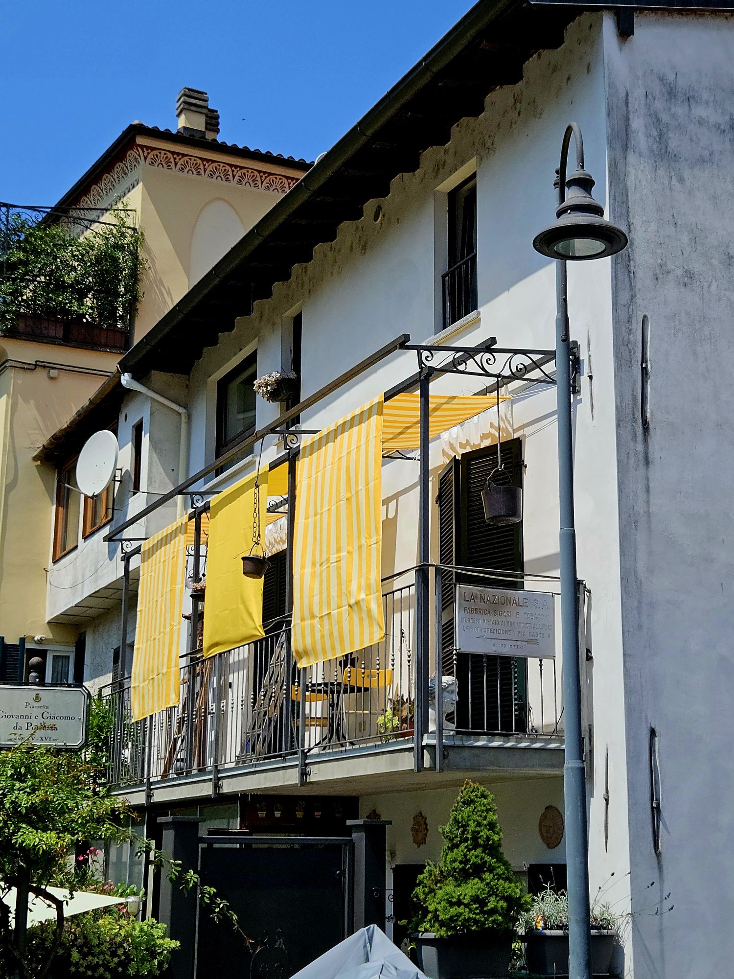 Oben vom Balkon winkte schon Kais (und meine) Nichte Lara, die mit ihrem Freund gerade in Pellio angekommen ist. Da sich ja die gesamte Familie die Wohnung teilt, gibt es hin und wieder auch Doppelbuchungswünsche. Kai und ich hatten zuerst reserviert, aber da die Wohnung eigentlich aus zwei zusammengelegten Wohnungen besteht und daher gross genug ist, macht es doch überhaupt nichts aus, wenn man sich trifft. Im Gegenteil, ich finde es sogar ganz schön.