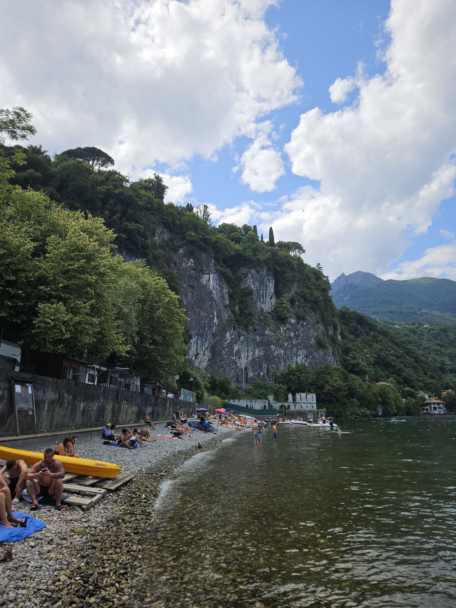 Das schöne an Porlezza ist, dass es dort ein Strandbad gibt, wo man kostenlos baden kann. Es gibt viele schattenspendende Bäume. Wer mag, kann sich auch ein Schirmchen und zwei Liegestühle mieten. Dazu gibt es noch eine Bar mit Snacks und Getränken und so könnte man hier den ganzen Tag verbringen.