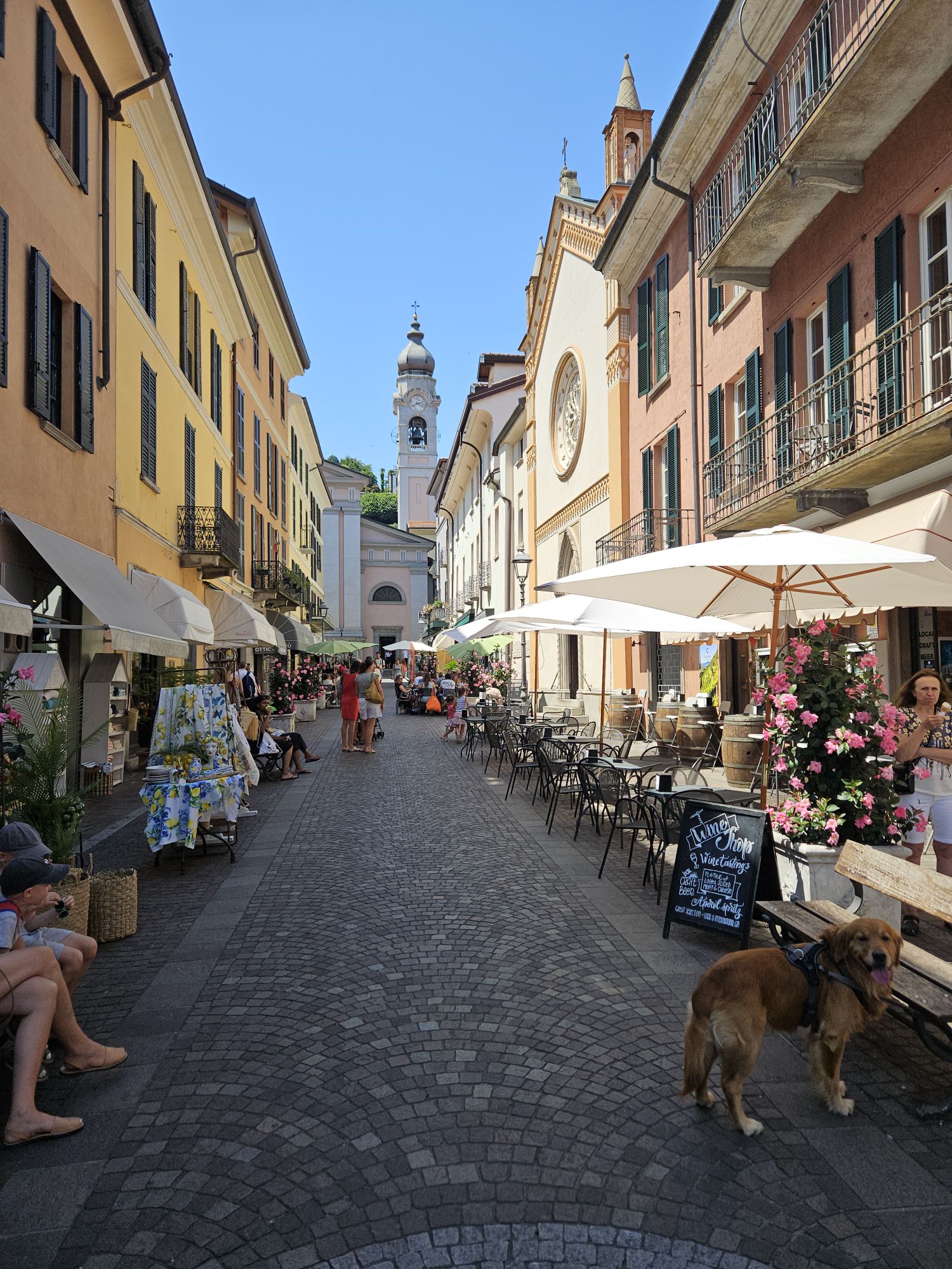 In Menaggio machten wir erst mal ein Kaffeepäuschchen und danach sind wir durch den Ort geschlendert. Es ist dort sehr aufgeräumt und unheimlich voll. Menaggio ist hübsch. Es ist Hauptsaison. Das merkt man abslulolut. Der kleine Ort ächzt unter den Touristenmassen. Dennoch ist es herrlich sommerlich, fast mediterran und wir geniessen den letzten Tag in Bella Italia.
