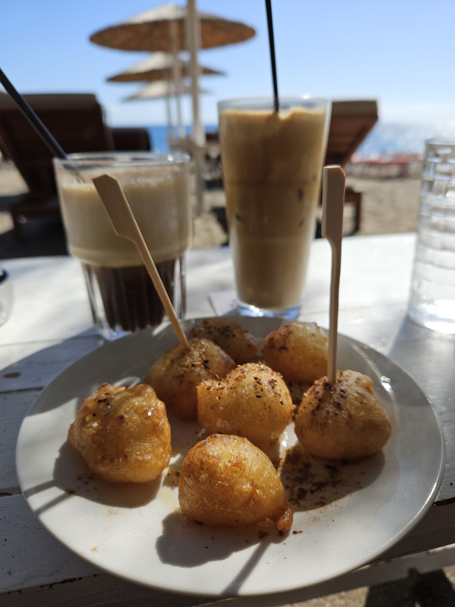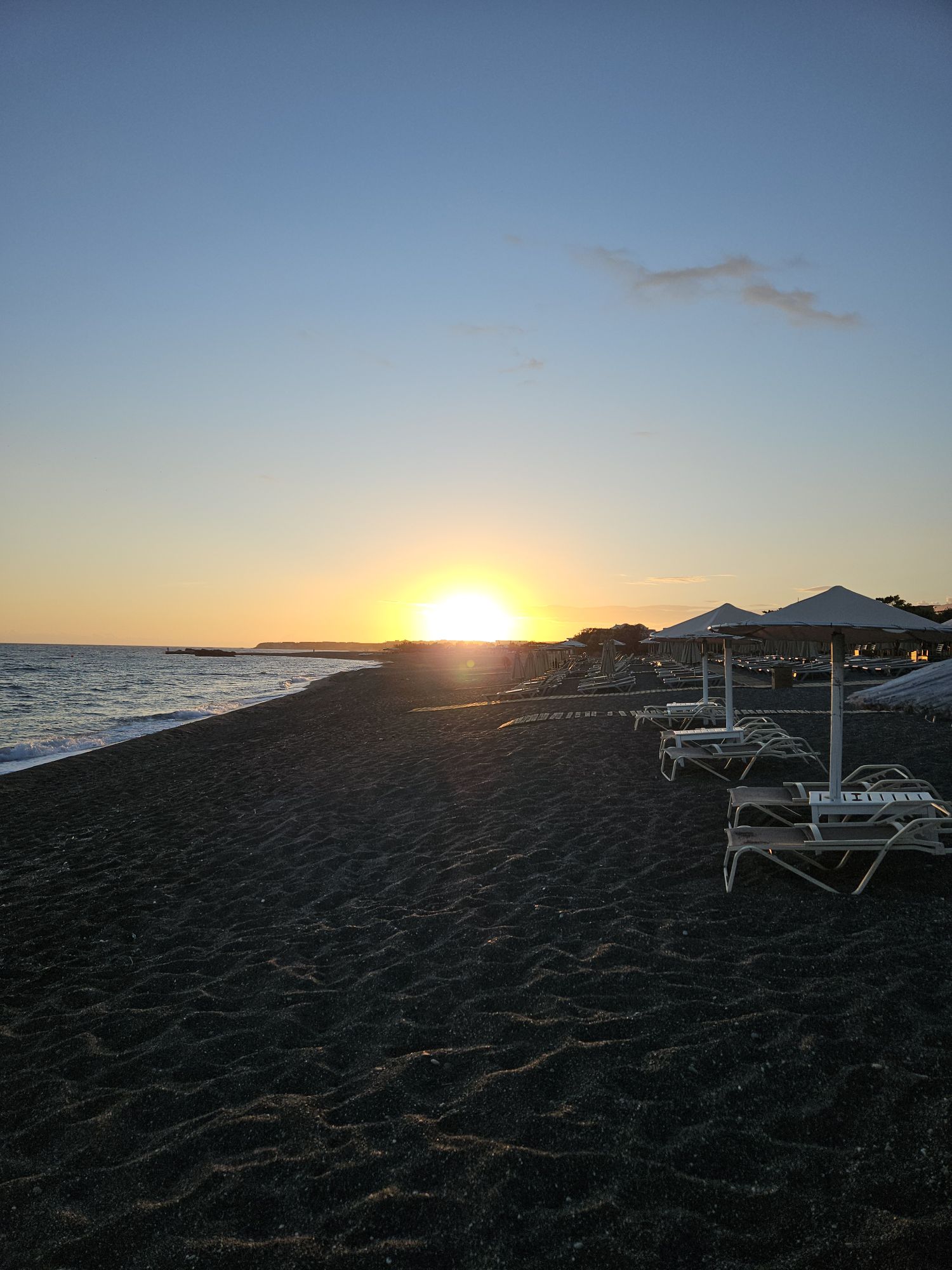 Loukomades, kenne ich schon von den Osterfeierlichkeiten der griechischen Nachbarn. Soooo lecker. Wie ueberall in Griechenland gibt es kleine Katzenfamilien. Die kriegen in den Sommermonaten genug zu füttern. Wie sie den Winter schaffen, weiss man nicht. Ich hoffe jemand kümmert sich um sie. Unsere Behausung im Coriva Beach Hotel. Einmal die Treppe hoch. Vom kleinen Balkon hatte man einen schönen Blick auf das Meer. Letzter Abend im Süden. Sonnenuntergänge kann man im Leben nicht genug sehen. Immer wieder etwas besonderes. Abfahrt in Richtung Norden.