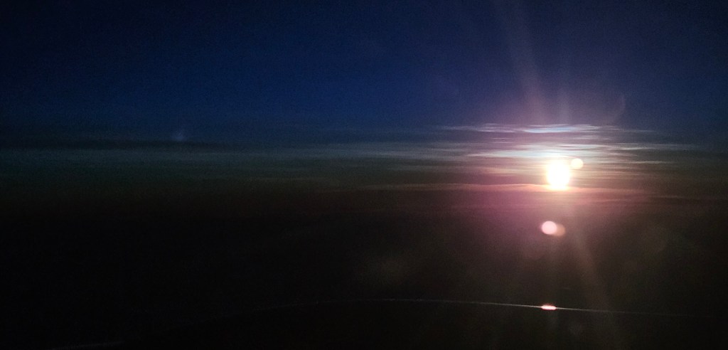 Während ich das schreibe, befinden wir uns irgendwo ueber dem indischen Ozean. Gerade haben wir das vietnamesische Festland verlassen und momentan sieht man nur Wasser, soweit das Auge reicht. Kai hat schon die Rückenlehne nach hinten geklappt. Ich werde das auch gleich tun, und hoffentlich in der Lage sein, ein Schläfchen zu machen.