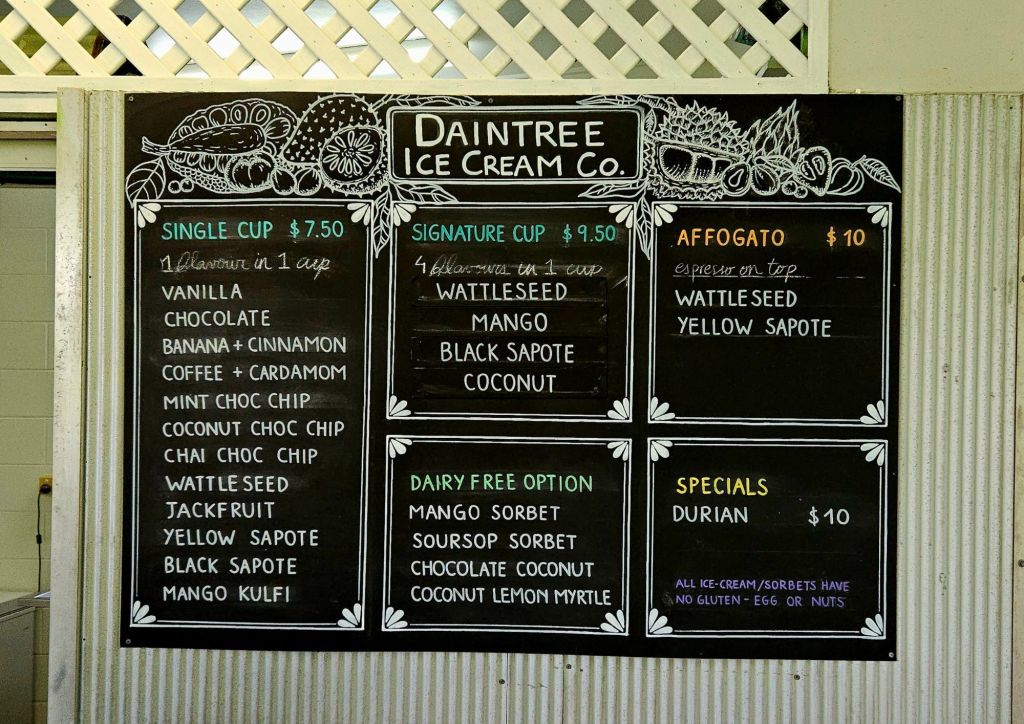 Direkt danach wurden wir zur Daintree Icecream Company gebracht. Einer Institution in der Gegend, die sehr leckeres Eis machen, vor allem aus tropischen Früchten. Manche davon kannte ich ueberhaupt nicht.