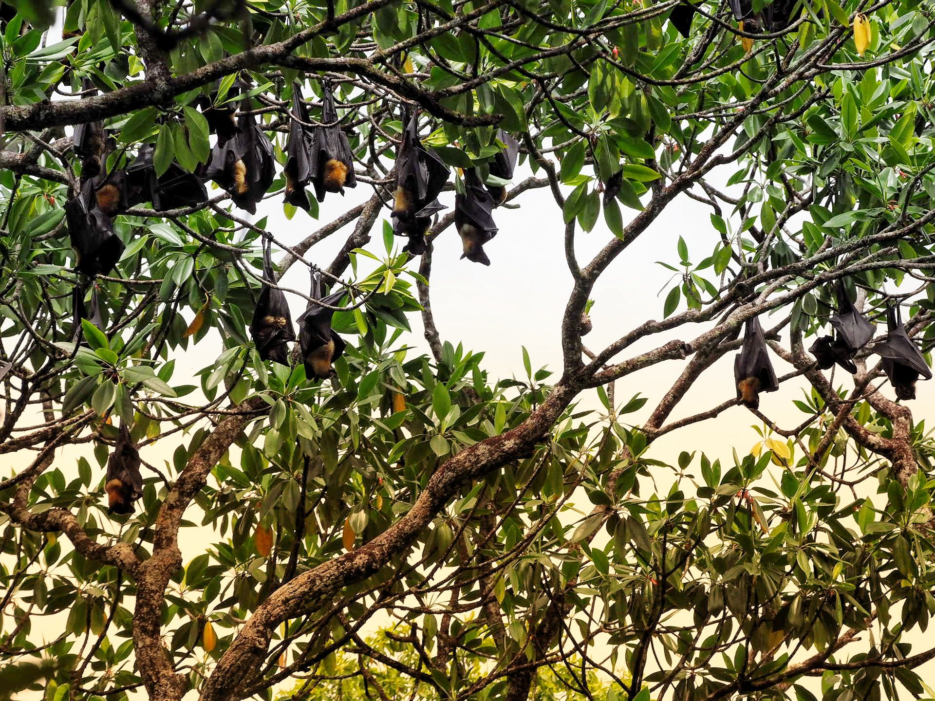 Besonders toll war dann auch die Sichtung eines Baumes, in dem sich dutzende Flughunde tummelten. Sie hingen da so rum und ich konnte in aller Ruhe mein Tele aufschrauben, um die possierlichen braunen Teddybären im Batman Kostüm zu fotografieren. Das sind dann immer die Momente, in denen mein Hobby Fotografinnen Herz Purzelbäume schlägt. Sind die nicht drollig?