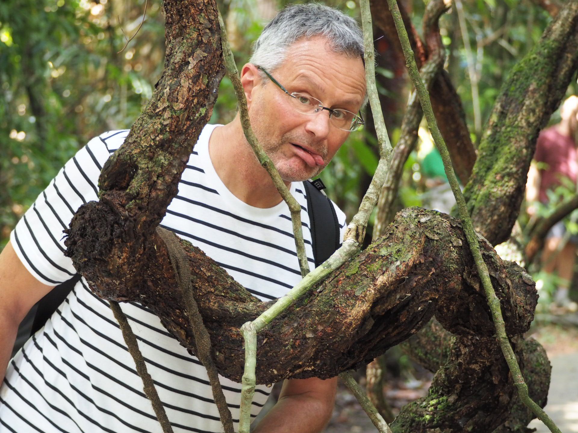Später haben wir noch gemeinsam zu Mittag gegessen und ein kühlende Bad in einem glasklaren Bachlauf genommen, dieser sei angeblich vollkommen ungefährlich. Alle gingen rein und Kai hat versucht, sich von einer Liane direkt ins Wasser zu schwingen. Das war schon etwas ulkig und alle umstehenden hatten was zu lachen und es gab Applaus für seinen Mut. Das ist eben einfach das schöne an kleineren Gruppen, man kommt mit allen mal ins Gespräch und das macht so viel mehr spass.