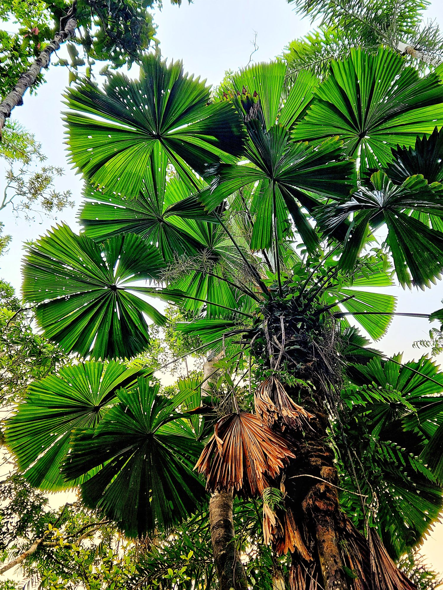 Riesengroße Strahlenpalmen, einfach toll! Zu denen habe ich einen besonderen Bezug, denn ich hatte mal die Aufgabe, diese Pflanze in einer Metallkonstruktion nachzubauen, mit einer Spannweite der Blätter von bis zu 6m. Das war eine statische Herausforderung. Wer es mal sehen moechte, zu „bestaunen“ auf der Aussenterrasse des Loop 5 in Darmstadt Weiterstadt.