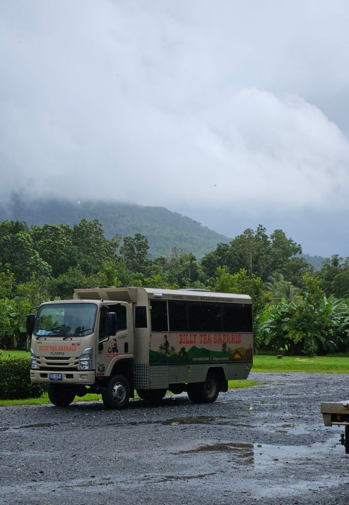 Wir wurden am Morgen gegen halb acht direkt am Hostel abgeholt und begrüßt hat uns freudestrahlend ein waschechter „Cairnser“ mit Namen Rohan. „Hi you must be Gabrielle?“ Unser Fahrzeug war ein umgebauter Truck mit nur 18 Sitzplätzen, und wir waren die letzten im Bus und wurden als „Team Germany 2“ vorgestellt. Wir sind eben überall. Ein reiselustiges Völkchen. Sollte man nicht meinen, das es dennoch so viele Menschen gibt, die in diesem Land braun/blau wählen. Reisen sollte eigentlich den Horizont weiten. Sorry, ich schweife ab 😂