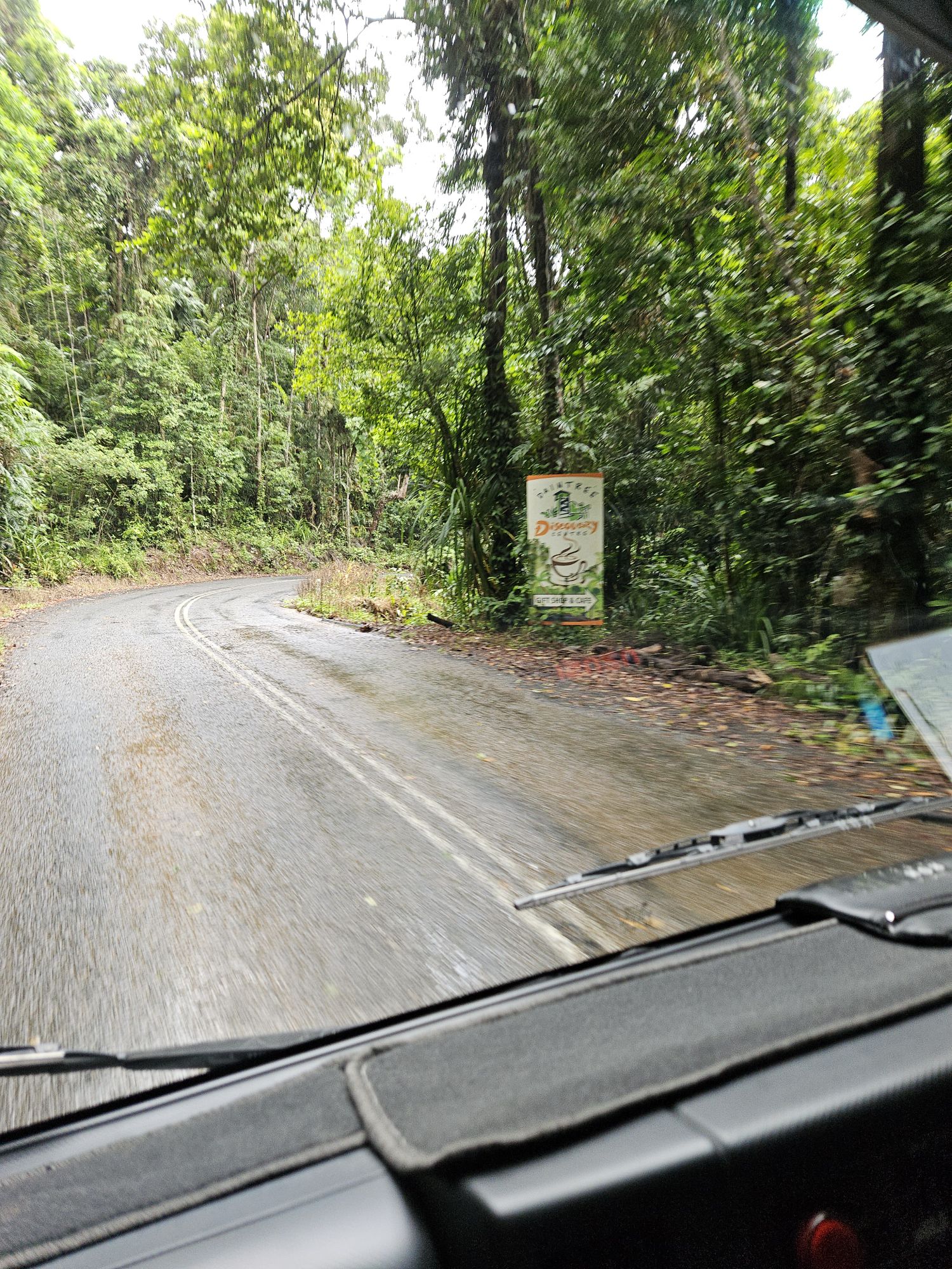 Bei der Weiterfahrt habe ich mich im Bus nach vorne gesetzt nach dem unser Guide gefragt hat, ob das jemand möchte. Von dort hatte man eine prima Aussicht, als wir tiefer und tiefer in den Regenwald gefahren sind.