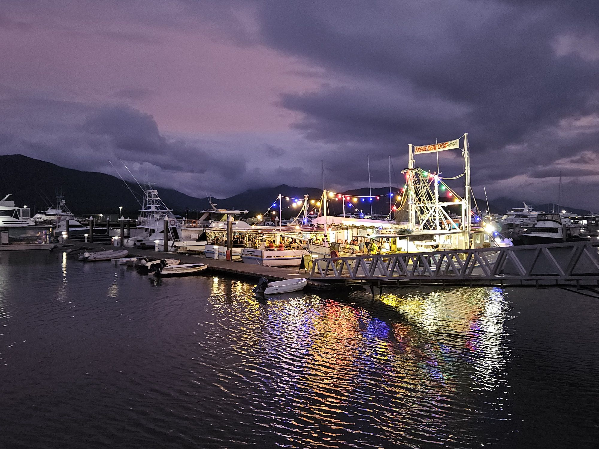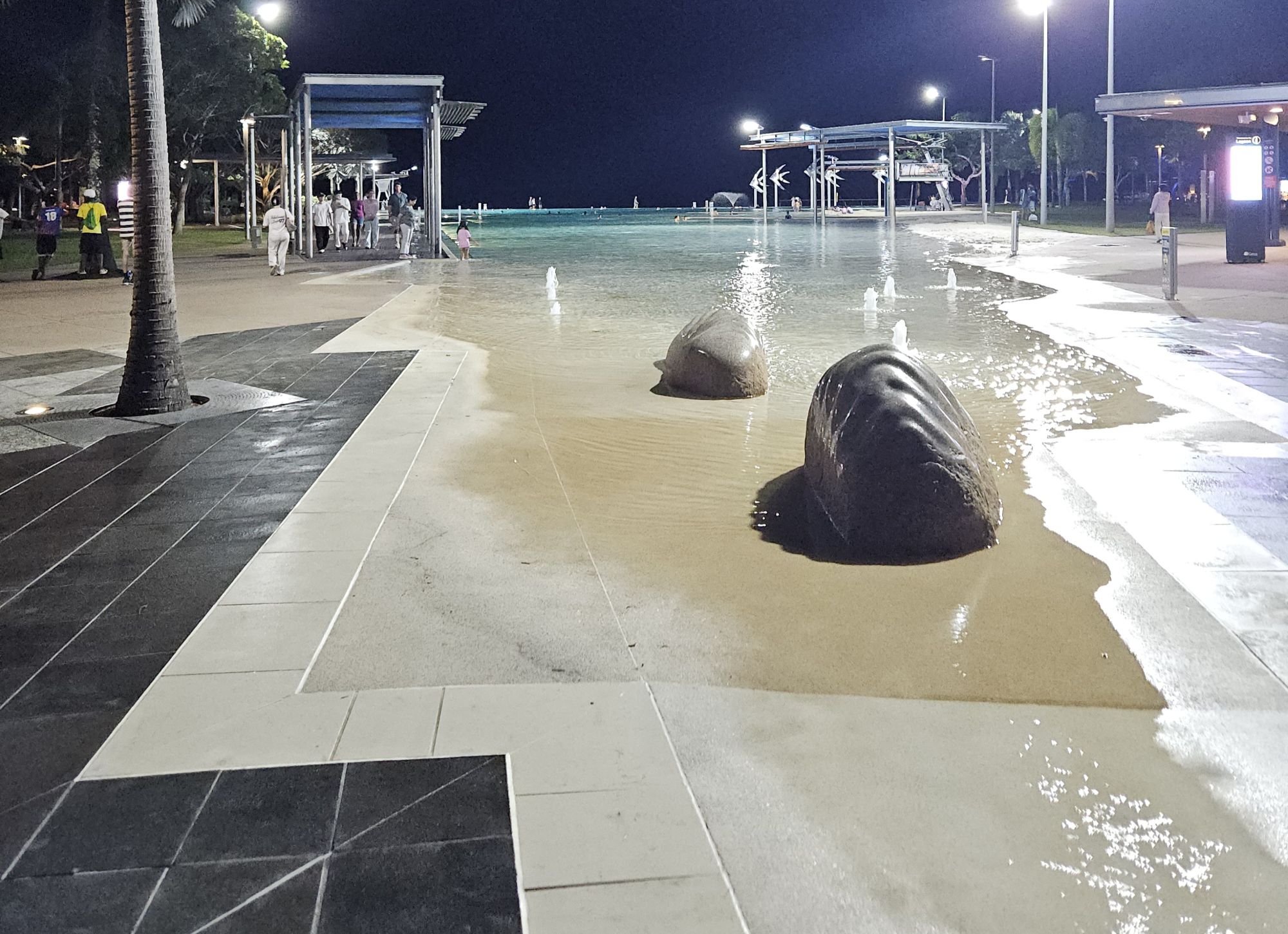 An unserem allerletzten Abend in Cairns waren wir später noch ein bisschen am Meer und im Ort unterwegs. Dabei haben wir diesen tollen Spot fuer den Aperitiv entdeckt. Wir fläzten uns auf weichen Sitzsäcken und freuten uns, dass wir noch fast drei Wochen haben, bis wir wieder nach Hause müssen. Wie schön.