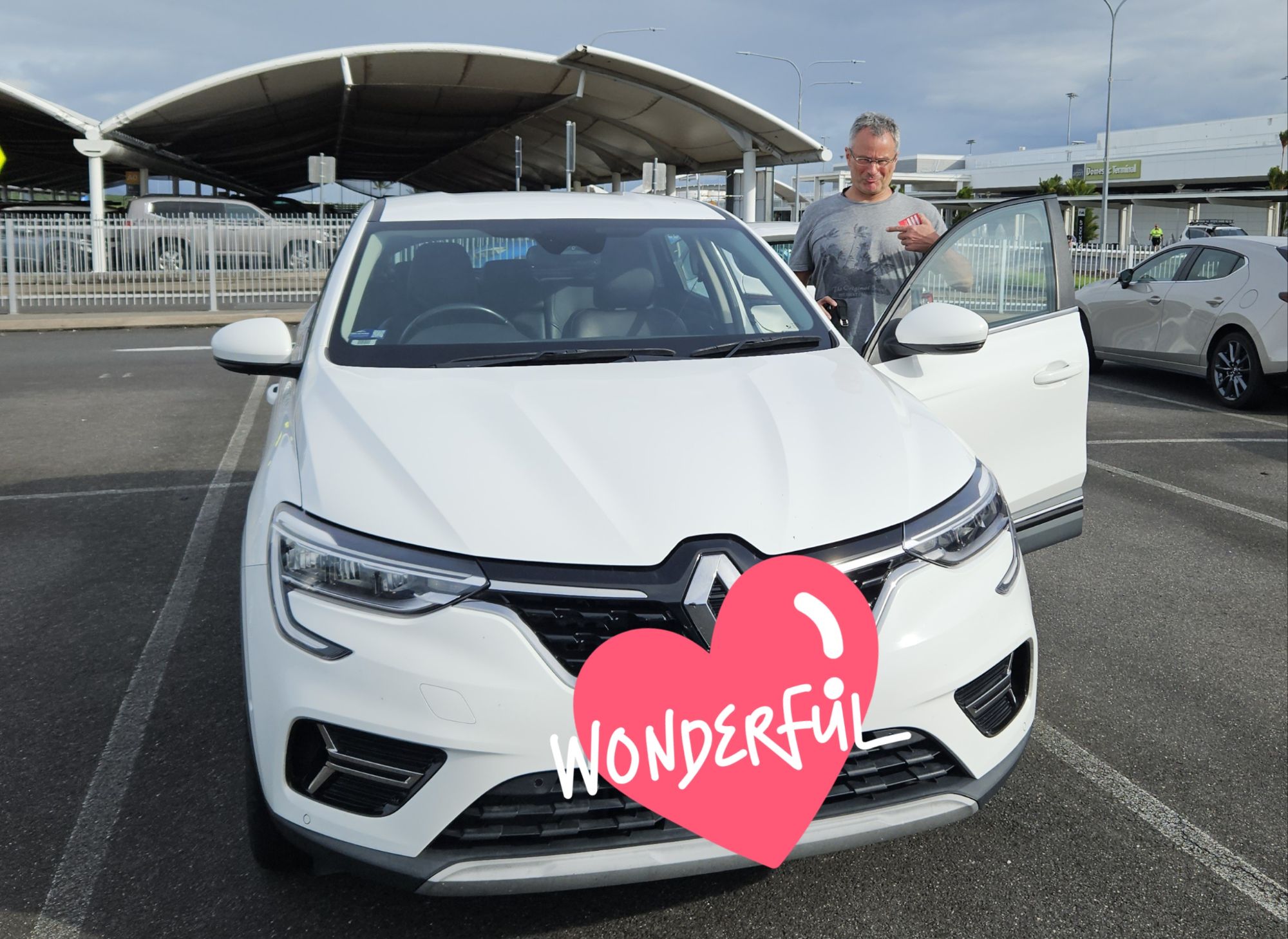 Unser hochmodernes Gefährt für die Rundreise. Wir mussten beide erst mal das Innere des Fahrzeugs studieren, bevor wir in der Lage waren, unsere Telefone direkt mit dem Bildschirm zu spiegeln. So koennen wir auch direkt das Navigationssystem vom Handy benutzen. Übrigens, wahre Geschichte, sind wir beide erst mal instinktiv auf die falsche Seite gelaufen. Hier ist aber alles andersrum und so lachten wir und stiegen jeweils korrekt ein.