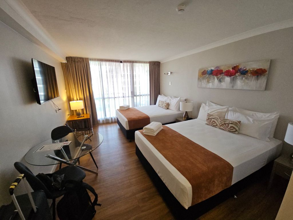 Nachdem wir uns von unserem netten Hostel verabschiedet hatten, sind wir mit dem Uber in die erste Behausung der selbstgeführten Mietwagenrundreise (so nennt man das bei den Profis ;-) gefahren. Es ging nur etwa 4 Kilometer weiter südlich ins Zentrum von Cairns. Dort bezogen wir ein Zimmer im vierten Stock des Plaza Hotels.