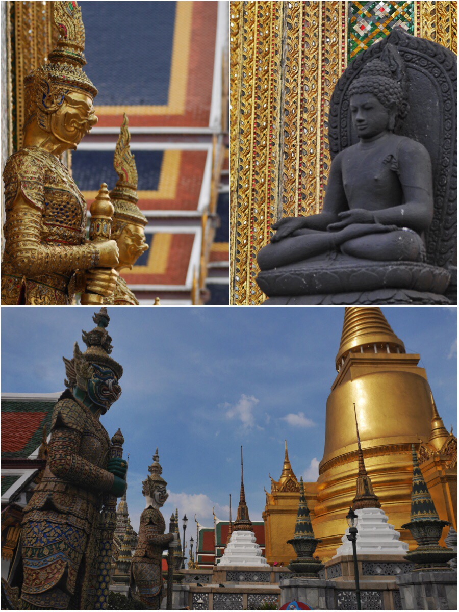 Wir hielten an der Einfahrt zu Angkor Tom an und stiegen ab, um beeindruckt erste Fotos zu knipsen. Wir fuhren weiter rein und machten beim Bayon Tempel halt. Dort schauten wir uns weiter um und gingen spazieren in der riesigen Anlage. Voller Ehrfurcht liefen wir entlang diverser kleinere Tempel und Toranlagen. Die Anlage drum herum ist grün und wird scheinbar recht gut in Schuss gehalten. In den Baumwipfeln fliegen grüne Papageien umher.