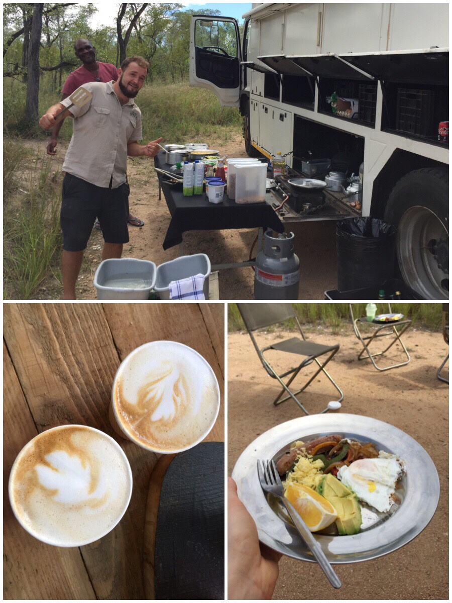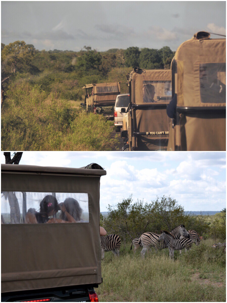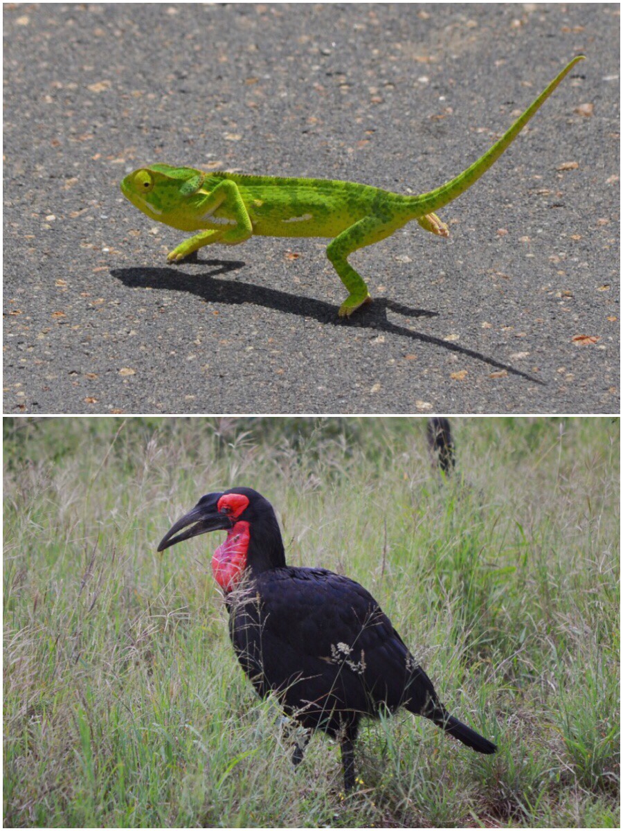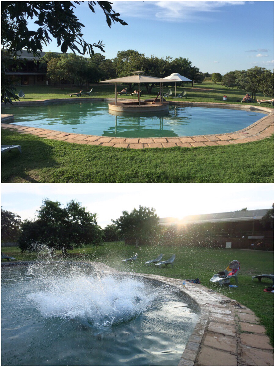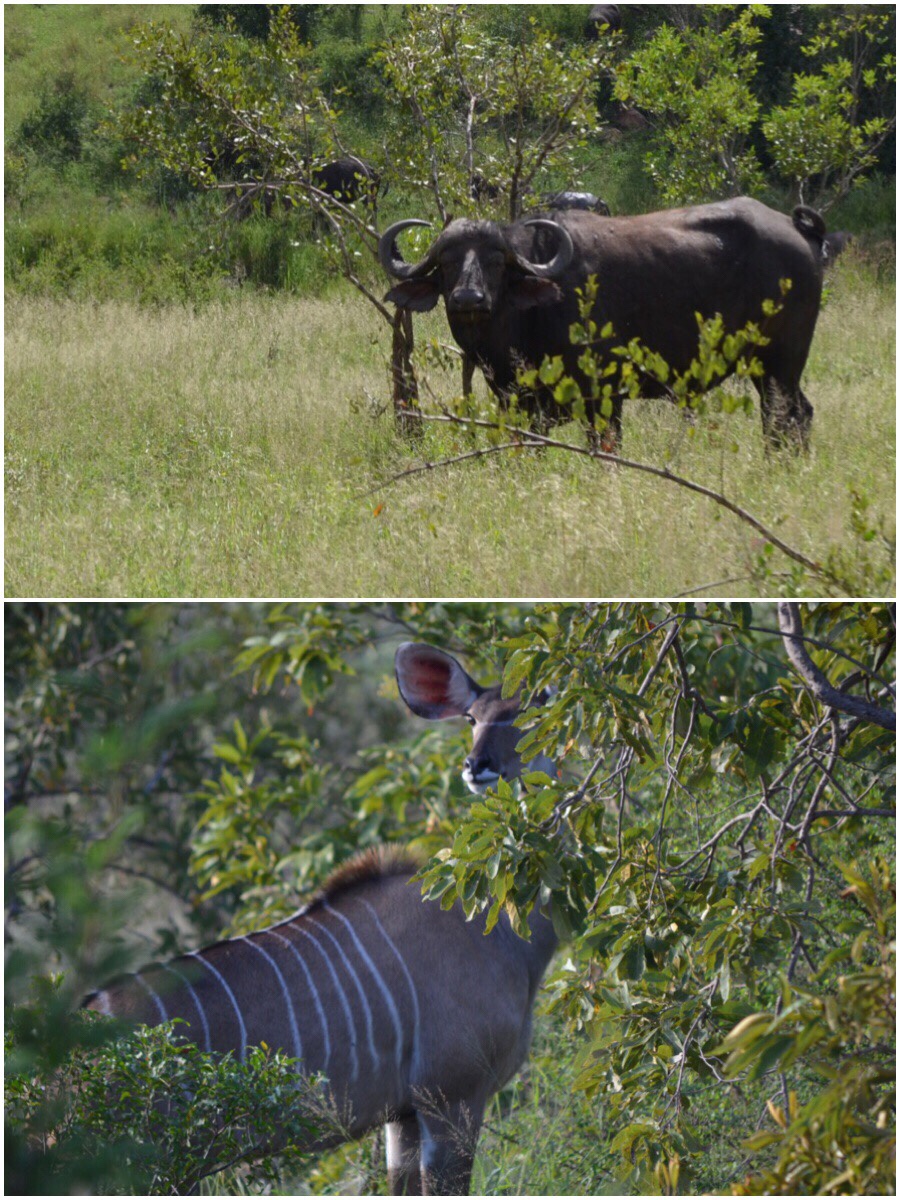 Auf dem Weg zu unserem nächsten stop machten wir mit dem Bus noch eine kleine Safari durch den Krüger Park. Es gab nochmals viele tolle große Tiere zu sehen. Einschließlich eines riesengroßen Nashorns, wie es gemächlich über die Straße lief, und eines superminikleinen Elefantenbabys, dass gerade noch aufrecht unter dem Bauch seiner Mama stehen konnte … kreischalarm. Soooooooo süüüüüüüssss!!! Kurz nach dem Park machten wir halt am Supermarkt und wir deckten uns mit notwendiger Nahrung ein, Wasser, Snacks und Alkohol für die nächsten Tage. Das ganze fühlt sich immer mehr nach Klassenfahrt an. Nur kurze Zeit später erreichten wir den Grenzübergang zum kleinen Königreich Swaziland. Die Formalitäten waren schnell erledigt und was als erstes auffiel, waren die überall aufgestellten Kondomspender. Wie in vielen Ländern Afrikas, hat auch Swaziland ein erhebliches Problem mit Aids. Etwa 35 % der Bevölkerung sind angeblich infiziert. Nach einer guten Stunde erreichten wir mal wieder ein kleines Stück des Paradieses. Den traumhaft gelegenen Hlane Nationalpark. Diese Reise ist unterteilt nach Zelt und fester Unterkunft. Wir haben die accommodated Variante gebucht, also mit fester Behausung und eigenem Bad. Und wir haben es bisher nicht bereit. Unsere Hütte im Park war traumhaft. Rund, aus Lehm geformt, mit einem Reisigdach, innen ein blank geschliffener Zementboden und einem Doppelbett überdeckt mit einer Art Zelt aus Moskitonetzen. Die behause wartete noch mit einer Besonderheit auf. Es gab keine Elektrizität. Keine Steckdosen oder Lichtschalter. Nur Petroleumlampen und Kerzen. Es war so unglaublich romantisch. Warmes Wasser gab es sogar, das wurde zentral befeuert. Nach einem kurzen nachmittagsnap zogen wir mit einem kühlen Getränk zum Wasserloch und starrten auf das Naturereignis. Leider waren gerade keine großen Tiere in Sichtweite. Das Abendessen im Camp bestand aus einer leckeren Lasagne mit großem Salat. Unser Guide JJ überrascht uns wirklich jeden Tag wieder mit neuen schmackhaften Gerichten. Über das Essen hier kann man wirklich nur in allerhöchsten Tönen schwärmen. Am Ende des Essens packt jeder mit an. So ist der Abwasch schnell gemacht und alles wieder ordentlich im Truck verstaut. Ein kurzer gute Nacht Trunk und wir waren wieder bereit für die Nacht. Um 8 ins Bett, kein Problem wenn man seit 5 auf den Beinen ist.