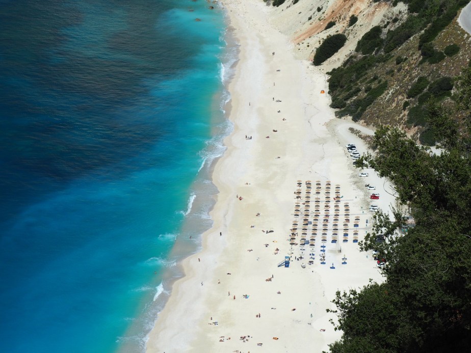 Ich liege gerade an einem der schönsten Strände auf der Trauminsel Kefalonia, dem Petani Beach auf der Westseite der Insel. Gerade waren wir im Meer schwimmen. Vor zwei Tagen haben hier noch die Ausläufer eines sogenannten Medicanes gewütet, ein mediterraner Hurricane. Der Wind ist heute weitgehend abgeflaut, aber die Wellen hier am Strand sind immer noch mannshoch. Dass sie dazu noch eine ordentliche Kraft haben, davon konnte ich mich gerade selbst überzeugen. Wir sind vergnügt in die blauen Wellen gesprungen, haben ein bisschen gepaddelt und uns mit den Wellen wiegen lassen. Aber dann beim Versuch, aus der recht hohen Brandung wieder rauszukommen, hat es mich mehrfach ordentlich zerbröselt. Halb nackig hat es mir fast den Arm ausgekugelt und ich wurde immer wieder runtergerissen und über den Sandstrand gefegt. Uiuiui. Irgendwann hab ich es dann geschafft, und außer einem Kratzer am Arm und mehreren Schaufeln Kiessand im Bikini ist alles gut gegangen. Den ganzen Tag konnte man die anderen beim gleichen Schauspiel beobachten … und hin und wieder schmunzeln, wenn es so manches Bikinioberteil heruntergerissen hat.