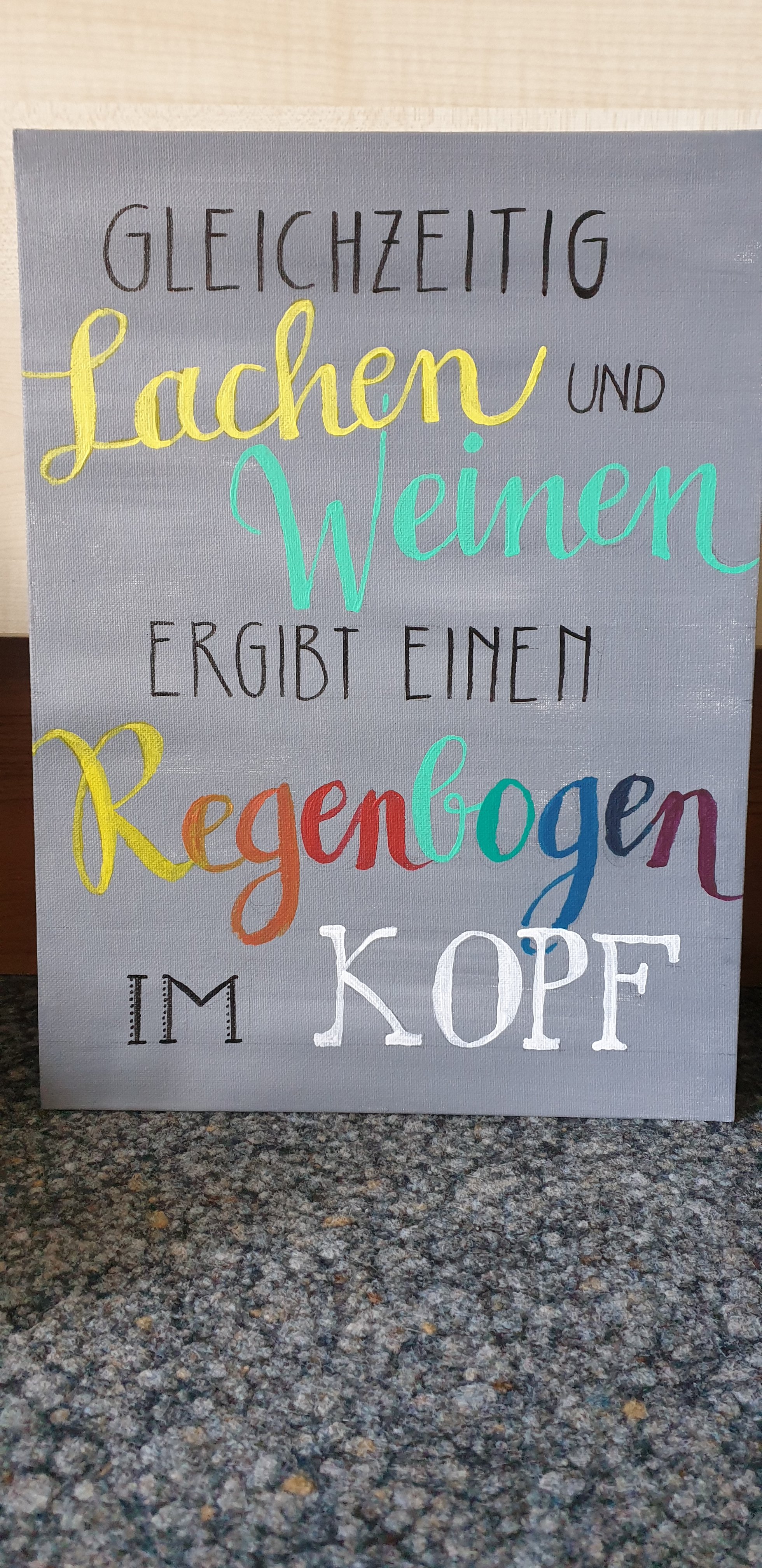 Wenn man gleichzeitig lacht und weint, bekommt man einen Regenbogen im Kopf. Dies ist mein neuer Lieblingsspruch … und passt zufälligerweise exakt zu meiner aktuellen Stimmungslage.