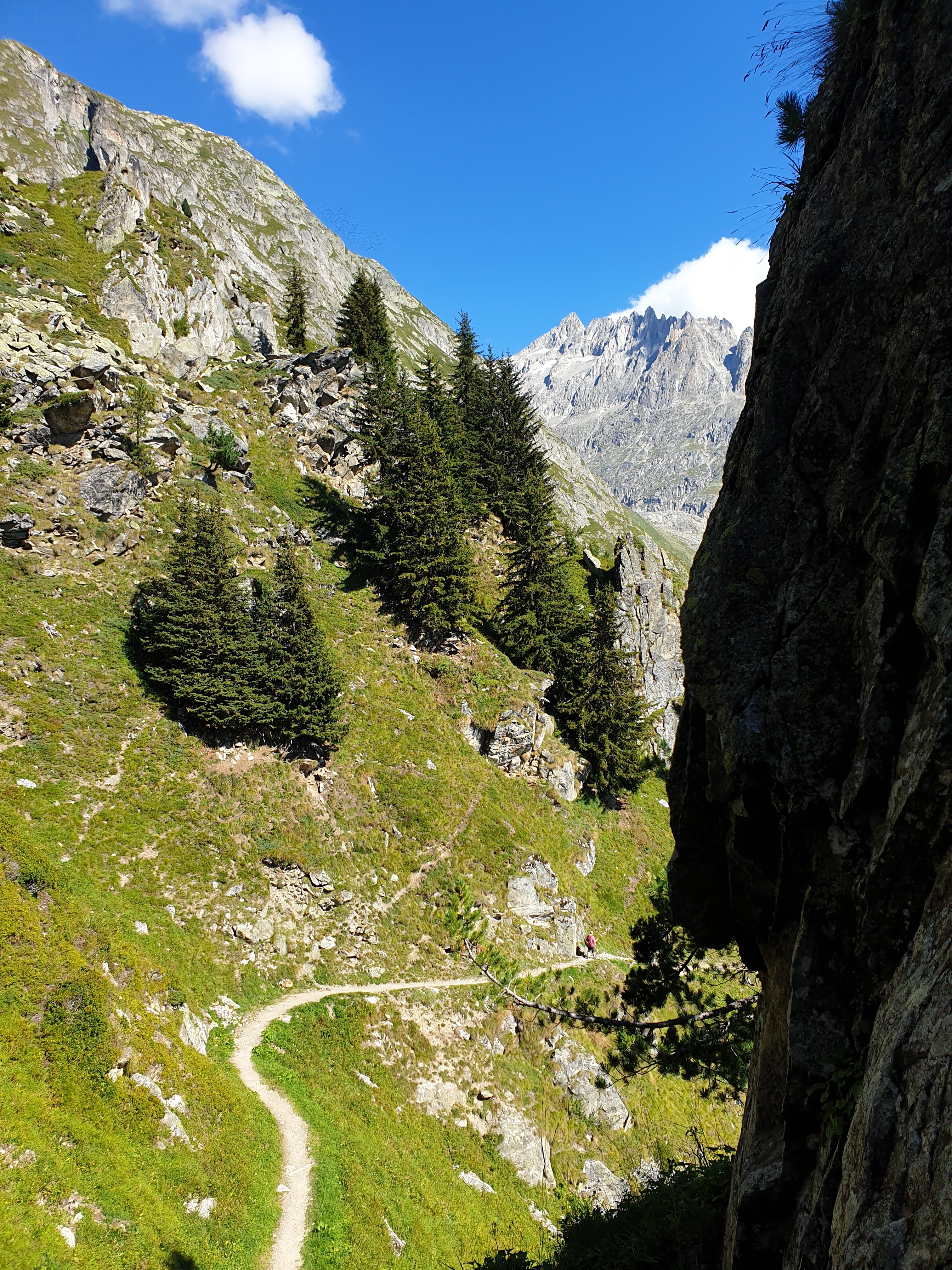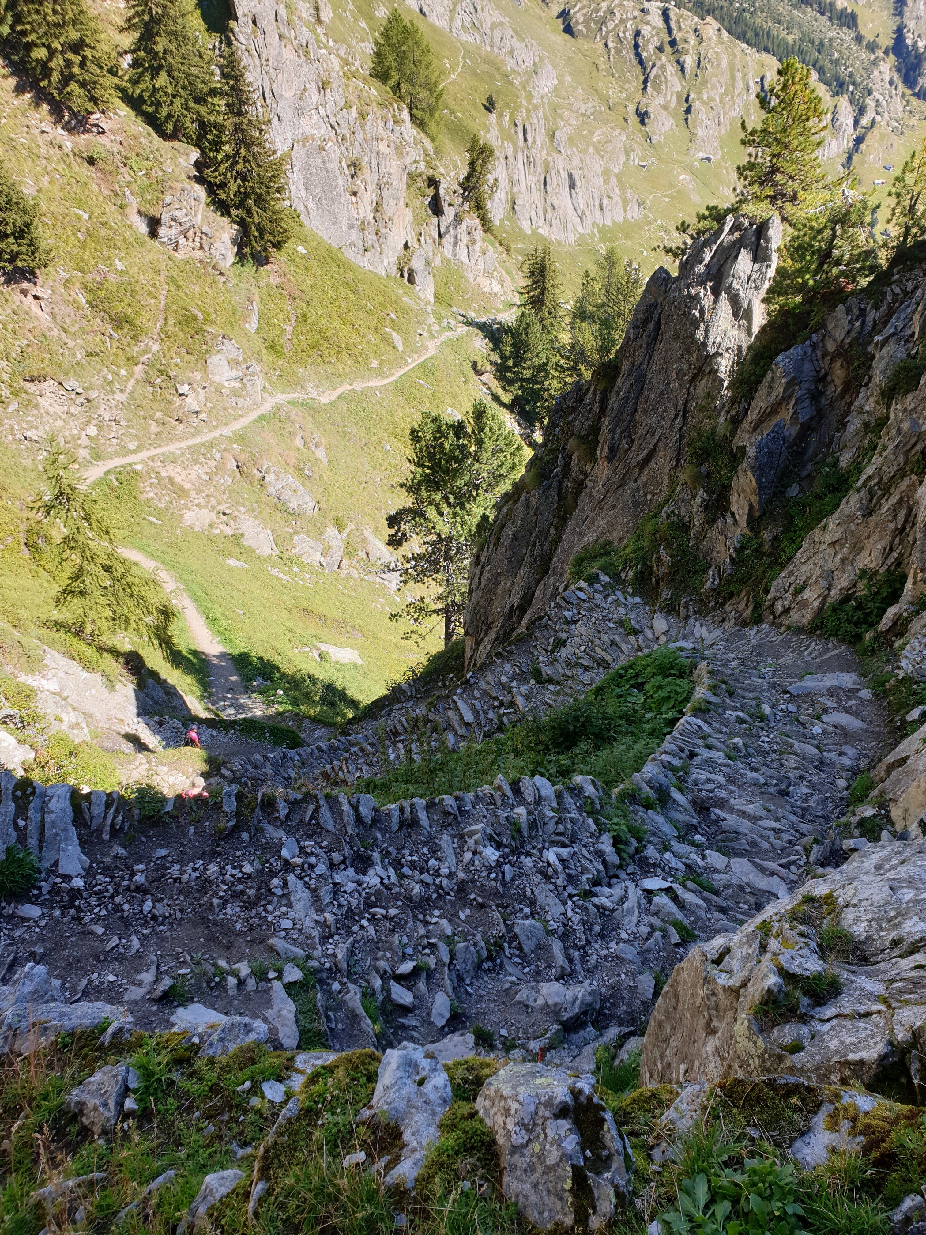 Ab dann ging es bergab, krass und heftig. Der Weg war schmal und sehr steinig. Das meinen sie also, wenn sie schrieben, der Weg erfordert Trittsicherheit. Dennoch, die Neugier war größer und wir stiegen immer weiter hinab. Herr C. wollte meinen Enthusiasmus immer wieder bremsen, denn man muss ja auch alles wieder hochlaufen. Aber wir waren doch schon soooo kurz davor.