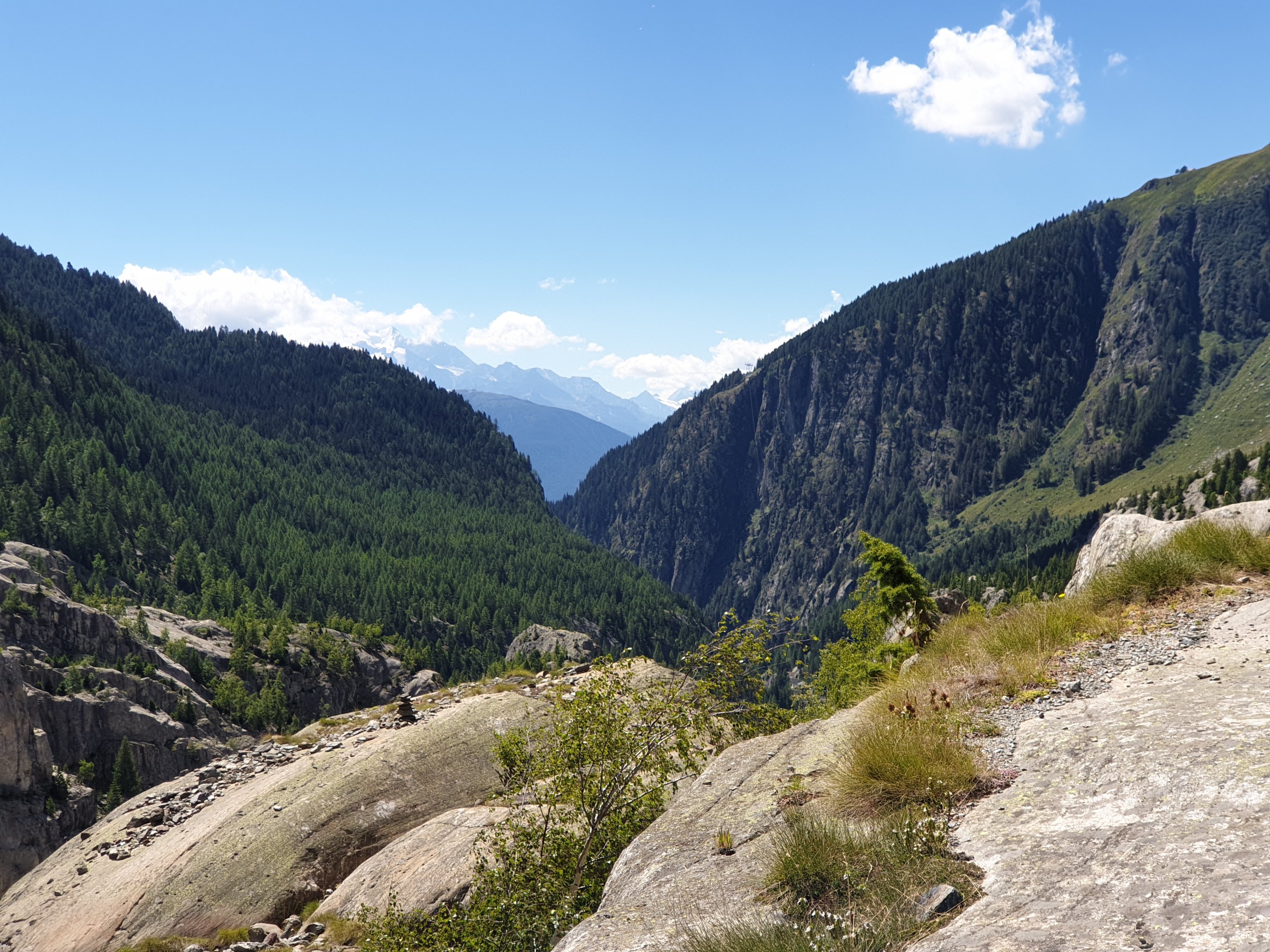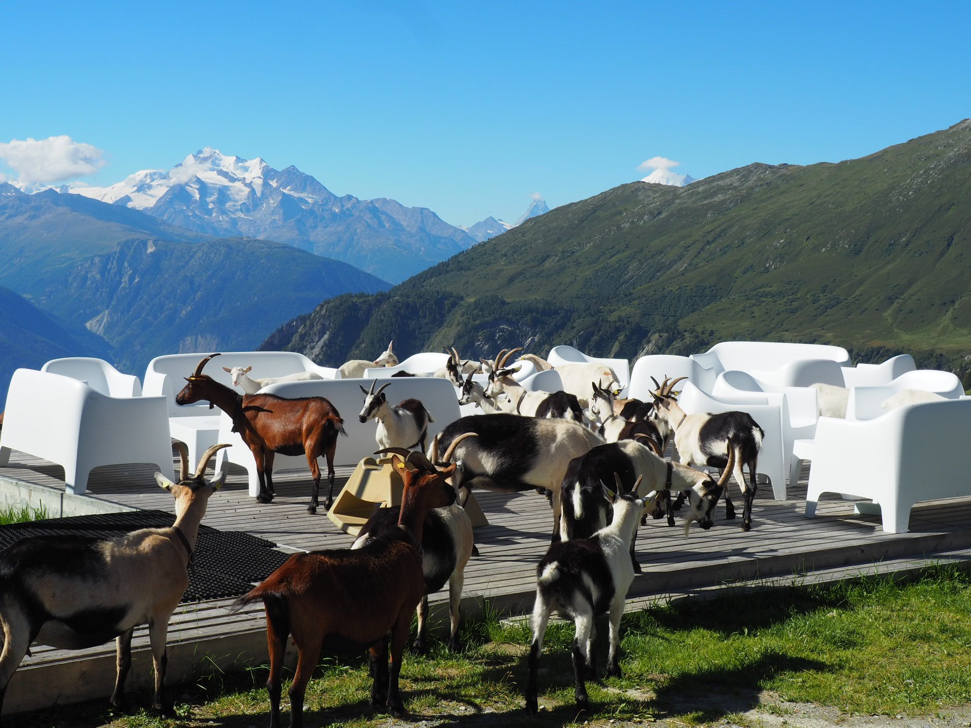 Vorbei am Belalp Hotel trafen wir auf eine große Schaar possierlicher Ziegen. Viele davon schwarz-weiß, die scheinen typisch für diese Gegend zu sein. Es gab noch einen absolut atemberaubenden und faszinierenden Ausblick auf den grossen Gletscher.