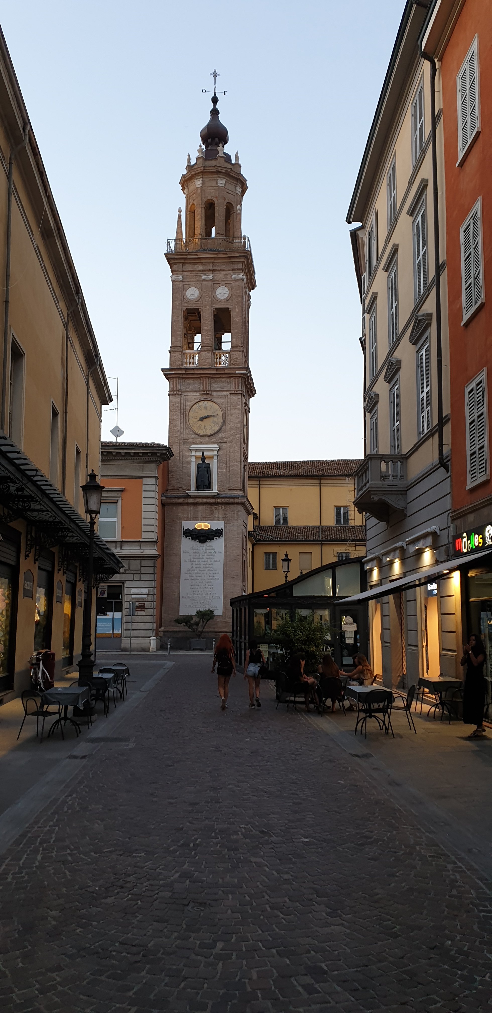Nach einem erfrischenden Bad sind wir zu Fuß in die etwa 2km entfernte Altstadt gelaufen. Wir hatten nicht erwartet, dass eine italienische Innenstadt an einem Freitag Abend so leer sein könnte. Wir bekamen sogar leichte Panik, weil irgendwie alles zu war. Es ist eben Ferienzeit in Italien, rund um den Ferragosto machen wohl fast alle Urlaub. Zahlreiche Bars, Restaurants und Geschäfte waren verschlossen. Das, zusammen mit den ausbleibenden Touristen, machte einen fast gespentischen Eindruck.
