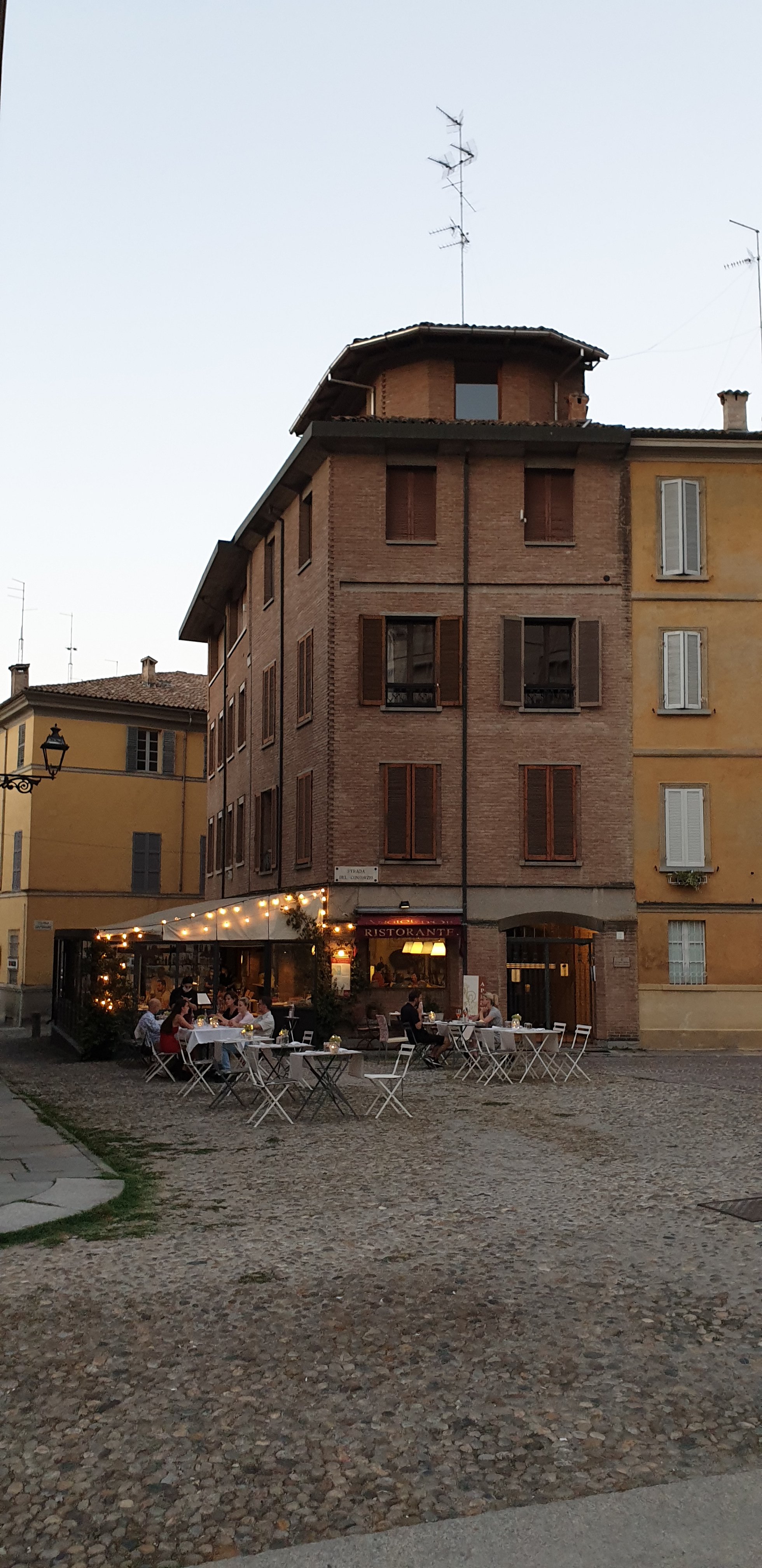 Trotz der Gluthitze sind wir am Abend wieder in die Stadt gefahren. Es stand ja immer noch die erste italienische Pizza auf dem Programm. Einen Aperitif spaeter wurden wir auf der grossen Piazza Garibaldi fündig. Ich schaute noch nicht mal nach Bewertungen der Restaurants, denn ich war sicher, eine Pizza kann man nicht verhauen.