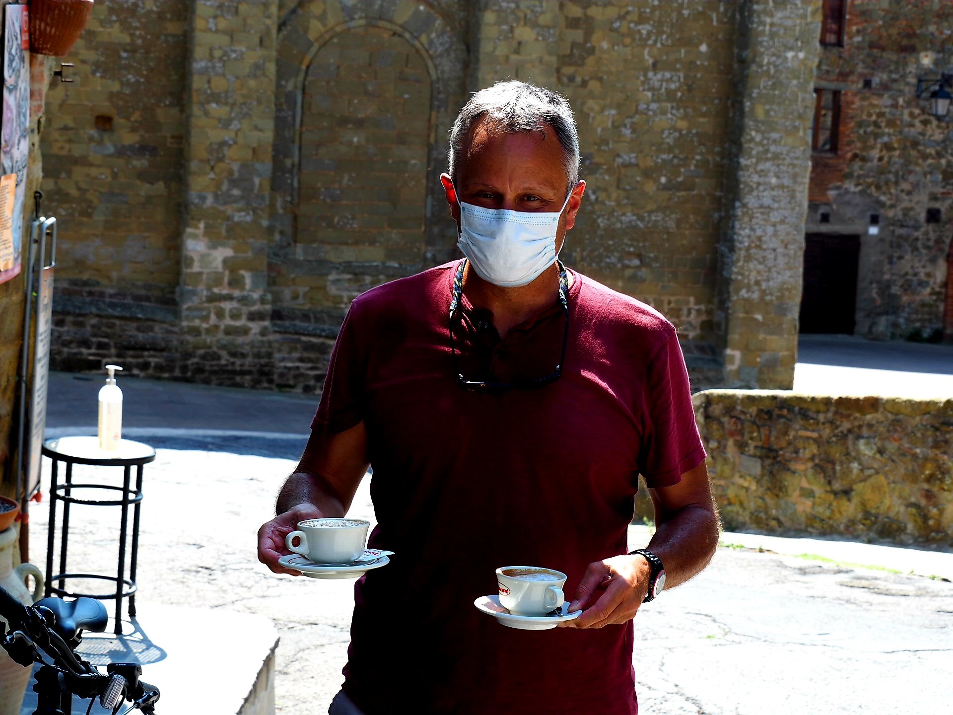 In Italien hat man schon das Gefühl, dass der Umgang mit dem Virus hier wesentlich besonnener ist als in der Schweiz. Hier läuft ohne Maske gar nichts. Im Hotel sowieso nicht. Am Pool muss man einen Termin fuer eine Stunde am Tag machen, dafür ist es dann aber auch nicht voll. Beim Frühstück heisst es Schlange stehen, da auch hier nur begrenzt Leute rein duerfen. Das sonst übliche Buffet gibt es auch nicht. Mir soll es recht sein. Ansonsten sind wir sowieso nur alleine unterwegs und im Freien.
