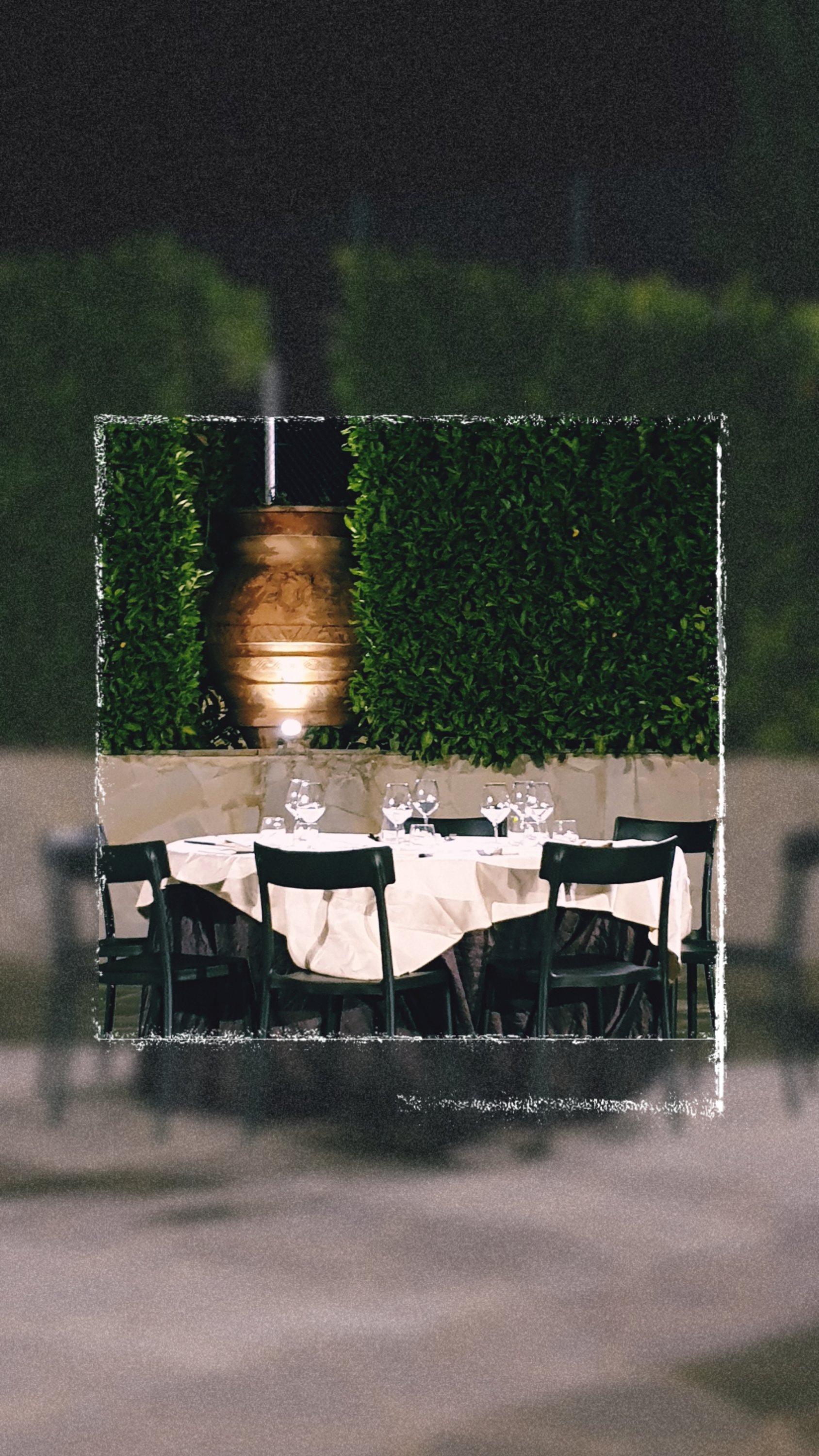 Nachdem mir Herr C. noch eine Stelle im Dorf mit frisch geschlüpften Minikatzen gezeigt hat, begaben wir uns zum Abendessen. Es ist momentan wenig los und dennoch war am Nachbartisch eine kleine italienische Gesellschaft, die mehr und mehr zu den Italorhythmen des DJs in Tanzlaune geriet. Während also mein Gatte und ich uns eine Flasche Hauswein teilten, stieg die Stimmung am Nebentisch. Die Atmosphäre auf dem von Lichterketten geschmückten kleinen Platz war so bezaubernd. Mehr Italien geht wohl nicht.