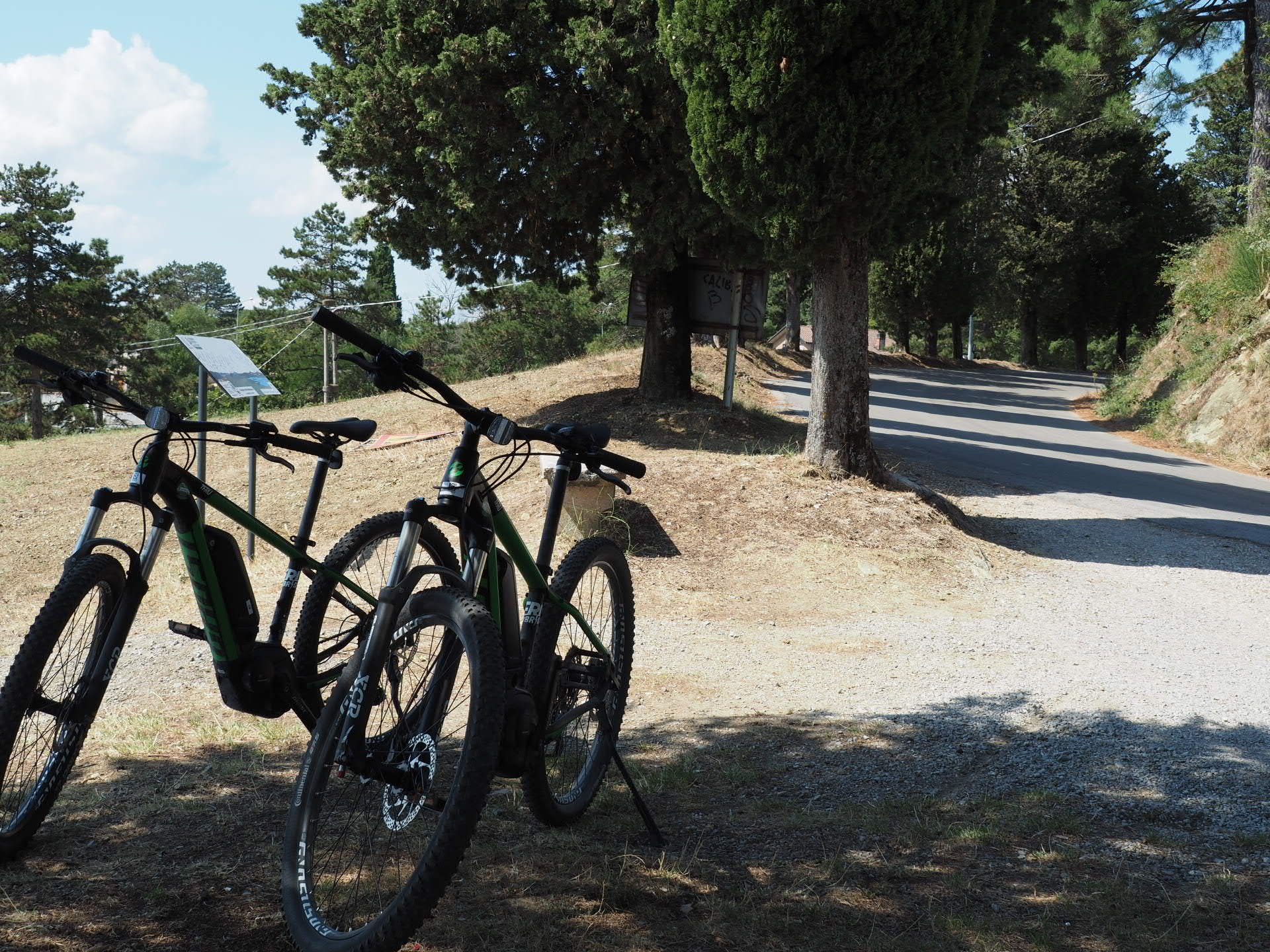 Vorgestern haben wir uns Fahrräder ausgeliehen, eben jene mit elektromotorischer Unterstützung. In unserer Fattoria waren alle irgendwie leicht verpeilt. Man hatte uns ja schon vorher mehrfach gefragt, ob wir nicht mal die Räder ausleihen wollten. Wir hatten es extra am Vortag angekündigt. Als wir dann danach fragten, war man auf einmal leicht überfordert. Man öffnete die Garage, in dem die Bikes teilweise noch original verpackt waren … natuerlich nicht aufgeladen ;-)