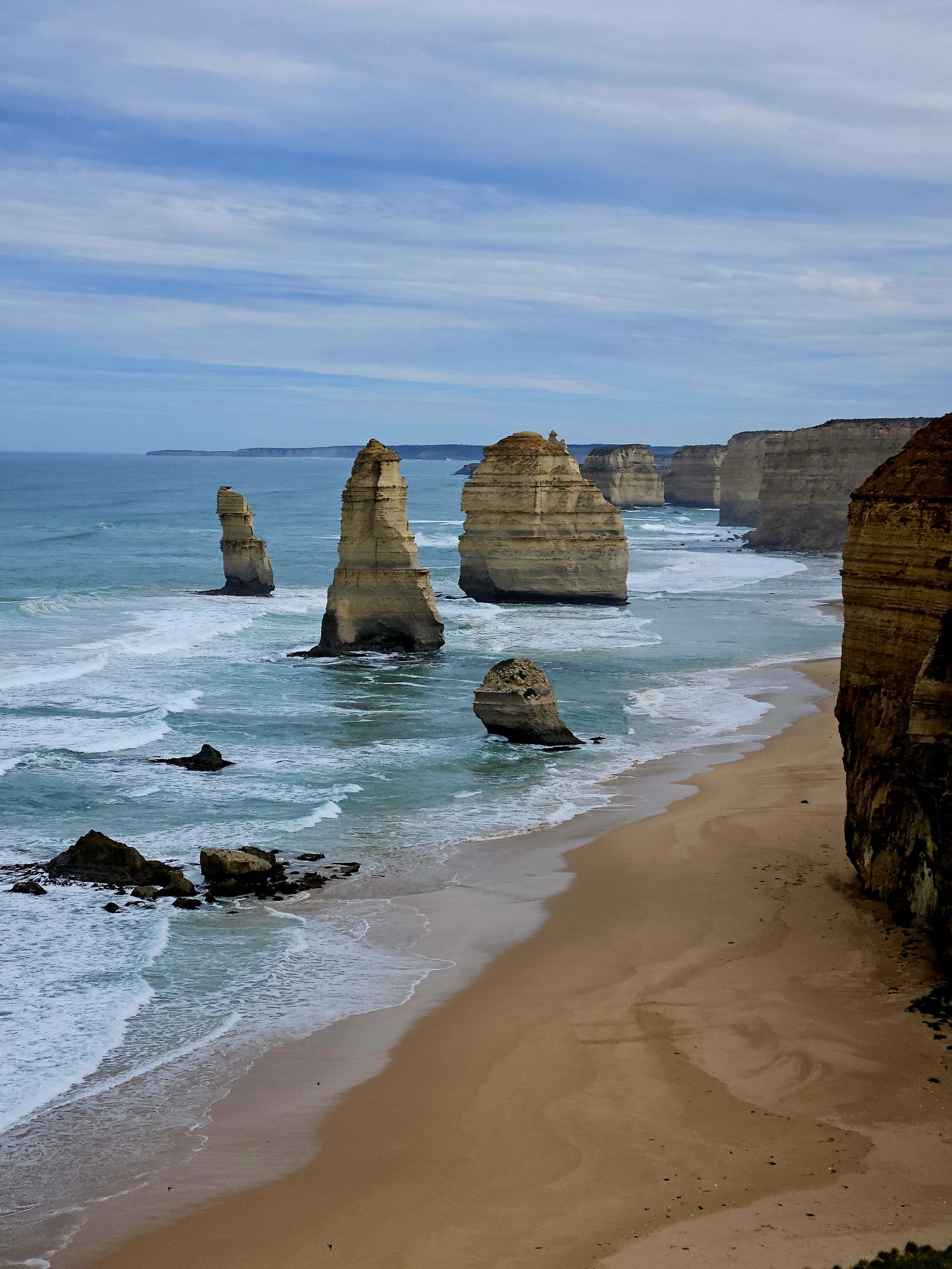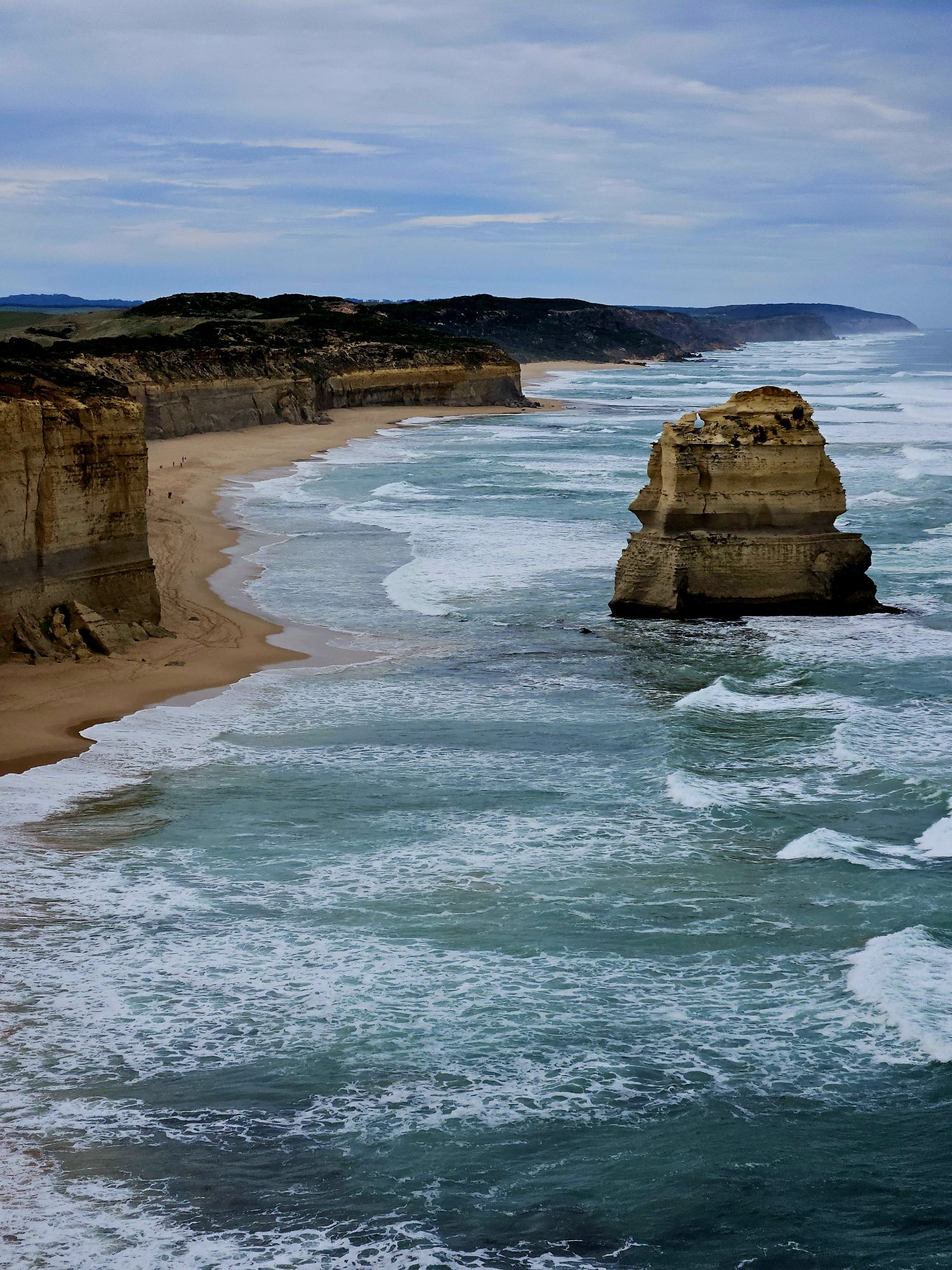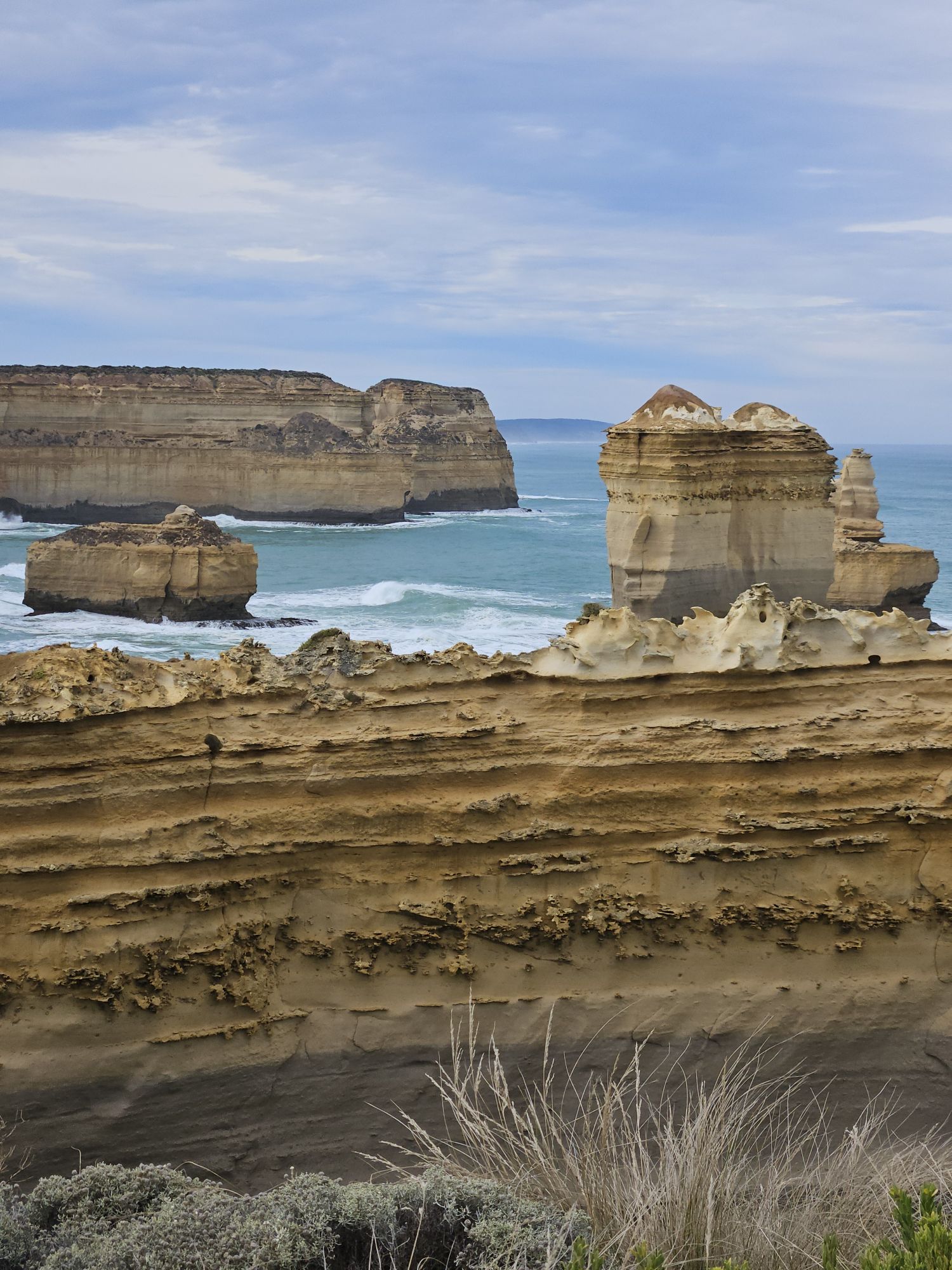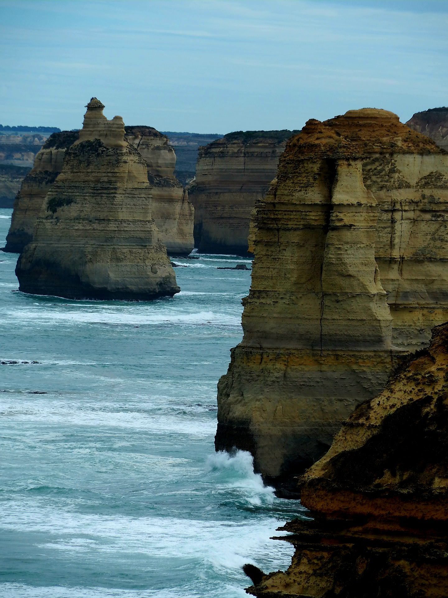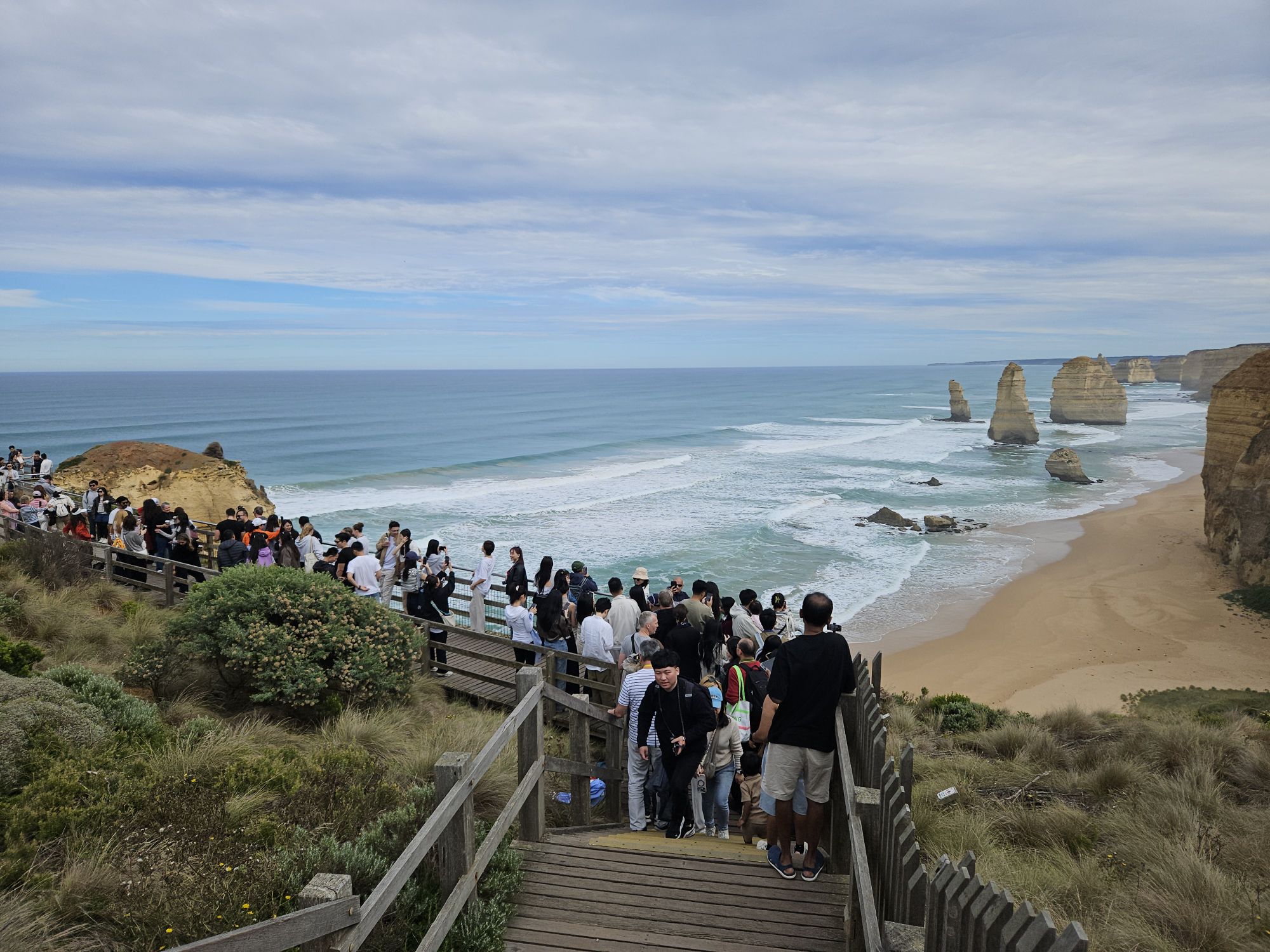 Zunächst ging die Fahrt aus Melbourne heraus und dann immer weiter südwestlich bis an die Küste. Von da hieß es in loser Reihenfolge: Aussteigen, knipsen und wieder einsteigen. Wieder eine Abfertigung der Massen, schade. Warum wir gleich zweimal so eine Tour machen willst du wissen? Na weil beide vorher fest gebucht waren und wir da jetzt nun mal drin stecken ;-) . Beim eigentlich Highlight, den wirklich sehr bekannten 12 Aposteln, die mittlerweile nur noch zu siebt sind, drängten sich die Massen dicht an dicht entlang der gut ausgebauten Wege zu den diversen Aussichtspunkten.