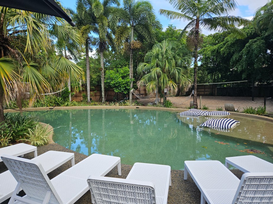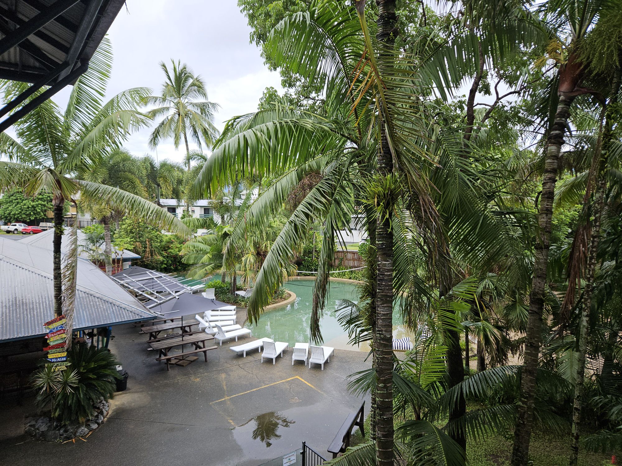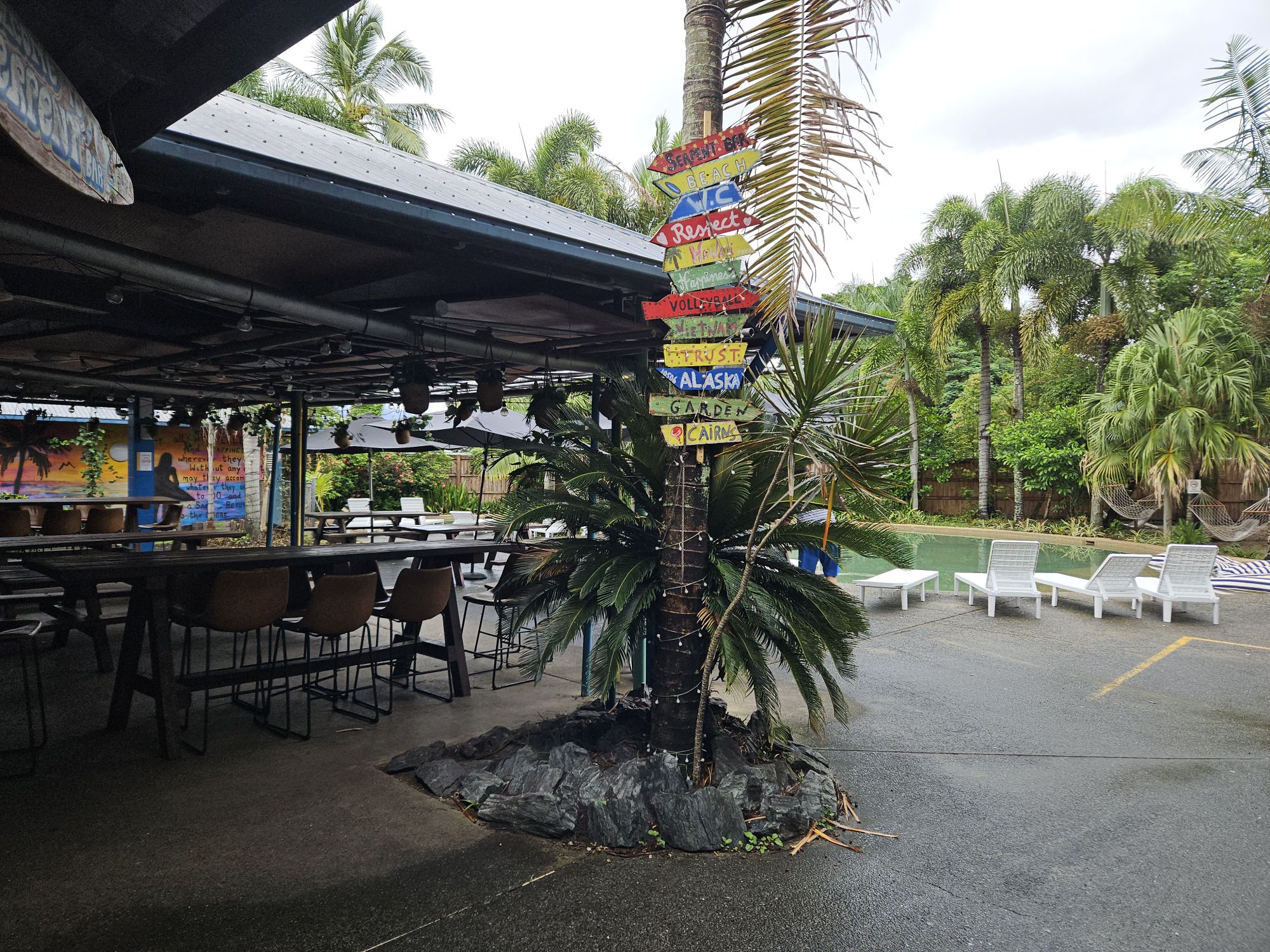 Die letzten beiden Tage haben wir einfach nur relaxed und die Stadt Cairns ein wenig erkundet. Das Wetter war am Karfreitag einfach so schoen. Es geht ja hier in Australien in Richtung Winter und die Regenzeit in dieser tropischen Gegend kommt langsam zu einem Ende. Während die ersten Tag hier noch absolut heiss mit sehr hoher Luftfeuchtigkeit waren, war es am Freitag einfach nur sonnig und trocken. Es wehte ein leichter Wind und so ließen wir es uns nicht nehmen, den gesamten Nachmittag am wunderschönen Pool des Hostels abzuhängen. Kai hat gelesen und ich habe Hörbuch gehört und gestrickt. Das war einfach herrlich.