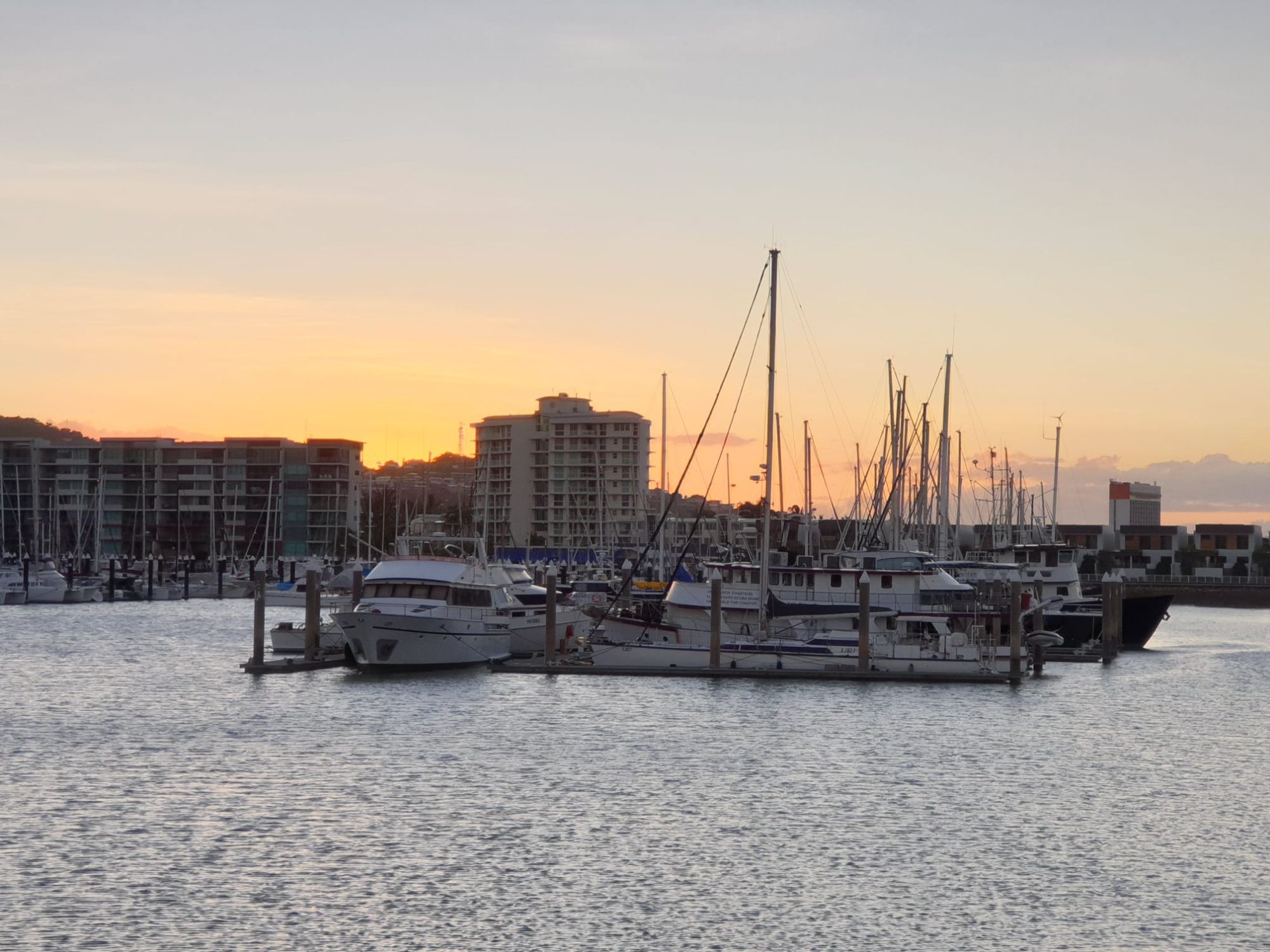 Durch die vielen Stops war die Fahrt recht kurzweilig und gegen vier erreichten wir das Grand Chancellor Hotel in Townsville. Dort bezogen wir ein Zimmer im 10. Stock mit toller Aussicht. Das Hotel war von aussen recht hässlich. Kai mag solche Klötze überhaupt nicht. Ich beruhigte ihn damit, dass wir ja von dort ausschauen und somit diese Geschmacklosigkeit nicht anschauen müssen 😂