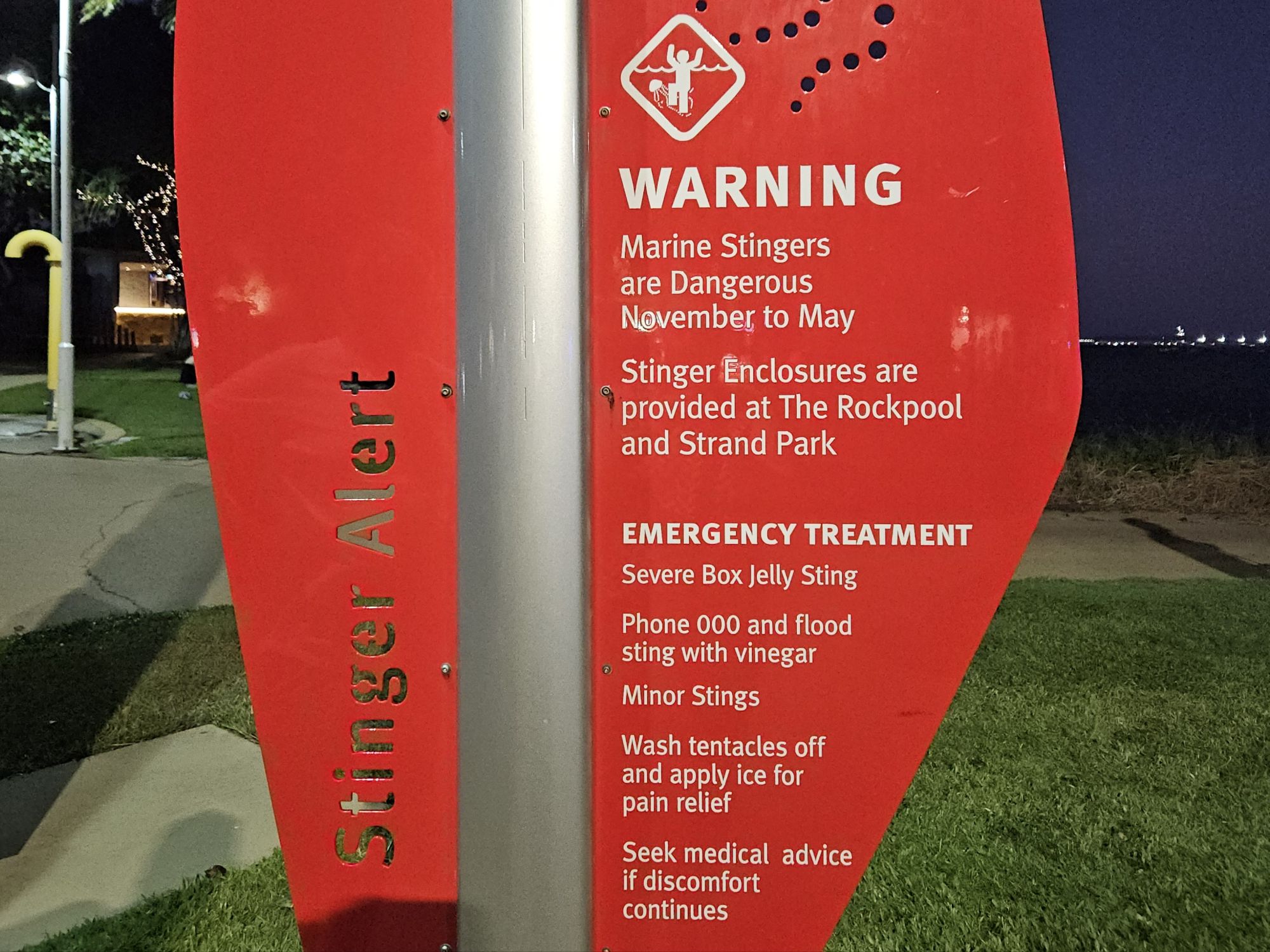 Baden ist auch hier leider mal wieder nicht möglich. Jedenfalls nicht, wenn das Wasser noch so warm ist, die gefährlichen Quallen gibt es auch hier. So schade. Irgendwie schwer auszuhalten. Wir waren noch nicht einmal im Meer baden. Hier wird aber auch ueber all dafuer gesorgt, dass es dennoch Möglichkeiten zur Abkühlung gibt. Manchmal gibt es kleinen Bereiche, die mit quallensicheren Netzen umspannt sind, es gibt richtige Meerwasserpools in die Felsen an der Küste eingebaut und dann eben auch die kostenlosen Schwimmbäder.