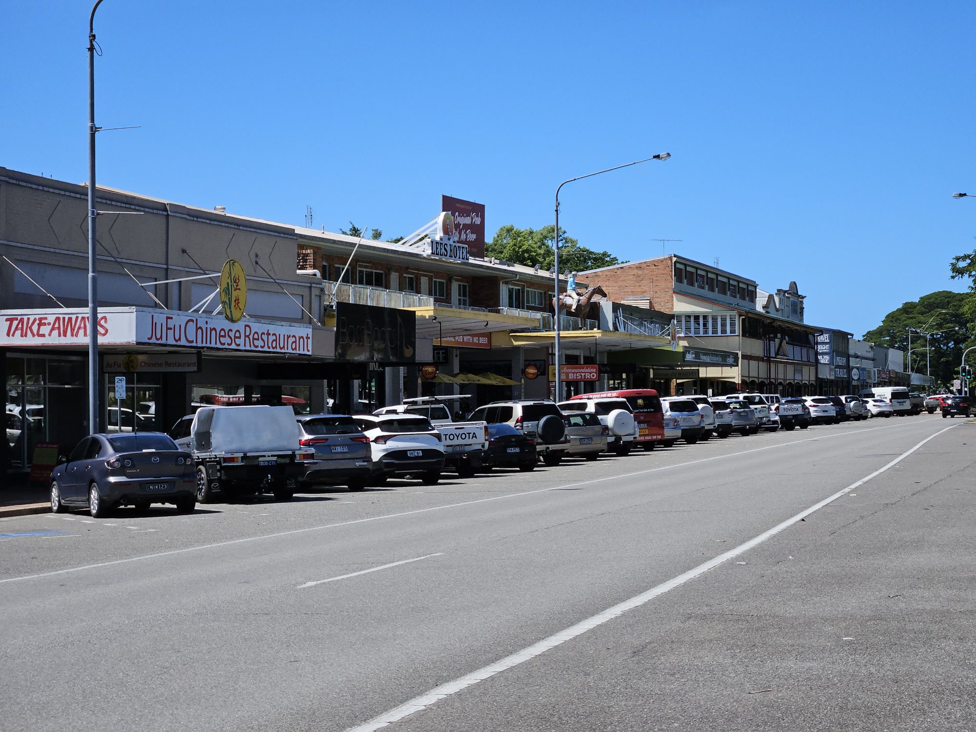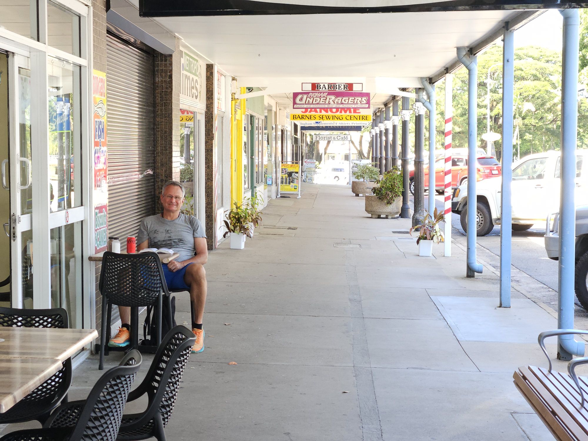 Irgendwann war Mittagszeit und unsere Mägen meldeten sich. Praktischerweise führt der Highway auf dem wir fahren, immer wieder durch kleinere Orte. So machten wir unsere Rast in einem kleinen Ort namens Ingham. Dort gab es nicht viel, ausser den aneinandergereihten Geschäftszeilen mit der typischen Überdachung. Ich googelte vorher schon einen Imbiss mit guter Bewertung, davor konnten wir direkt parken. Wir bestellten jeder eine Portion leckere Fish & Chips (hier sehr verbreitet, haben die Briten mitgebracht). Ich konnte Kai noch überreden in ein Stoffgeschäft zu gehen. Dort fand ich passende Knöpfe für meine bunte Strickjacke. Wenn ich die in Zukunft trage, muss ich dann immer an unseren Rast in Ingham denken.
