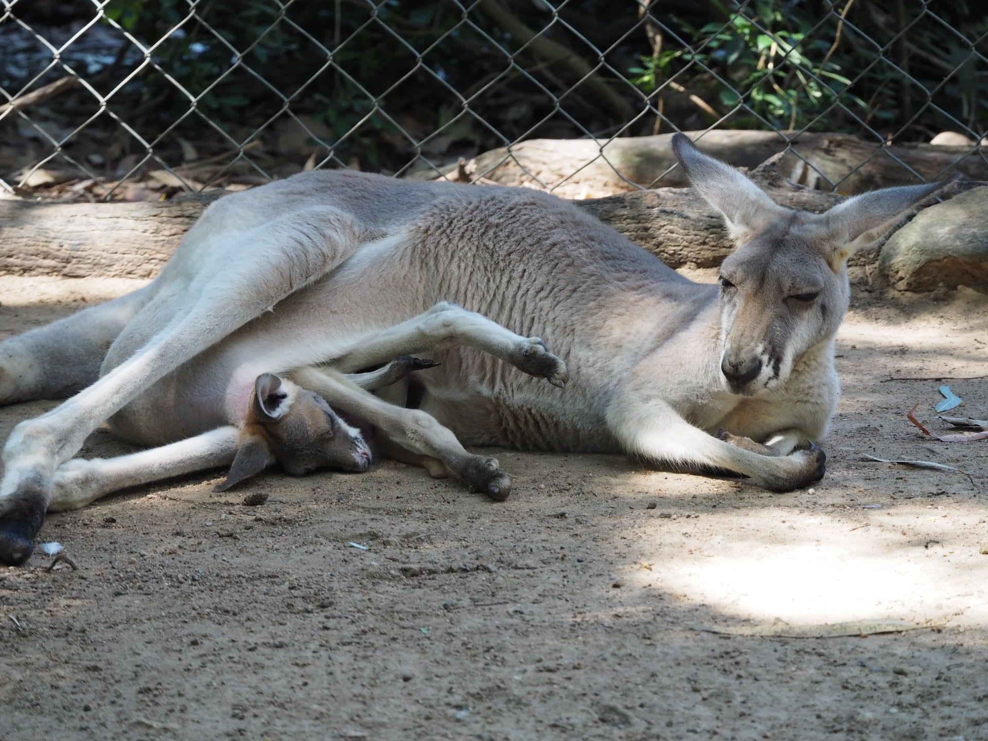 Wir waren ja schon mal am Anfang in einem solchen Gehege, aber ich kann einfach nicht genug von den australischen Beuteltieren bekommen. Kai hat vollstes Verständnis dafür.