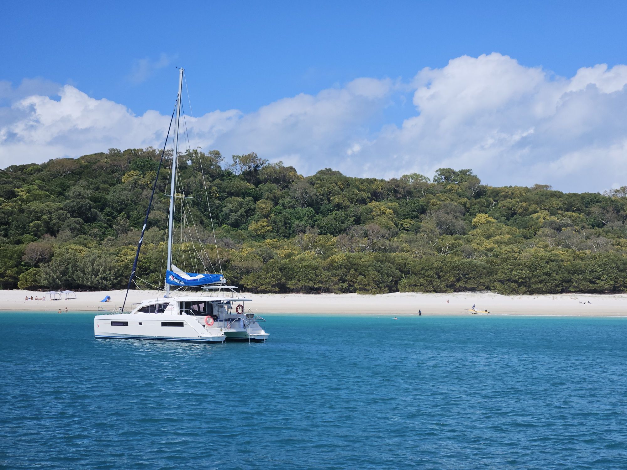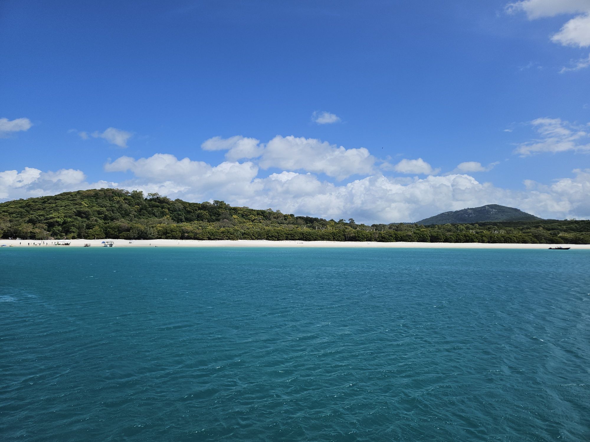 Nach etwa eineinhalb Stunden erreichten wir den langen, weißen Whitehaven Beach und wurden mit einem kleineren Tenderboot an Land gebracht.