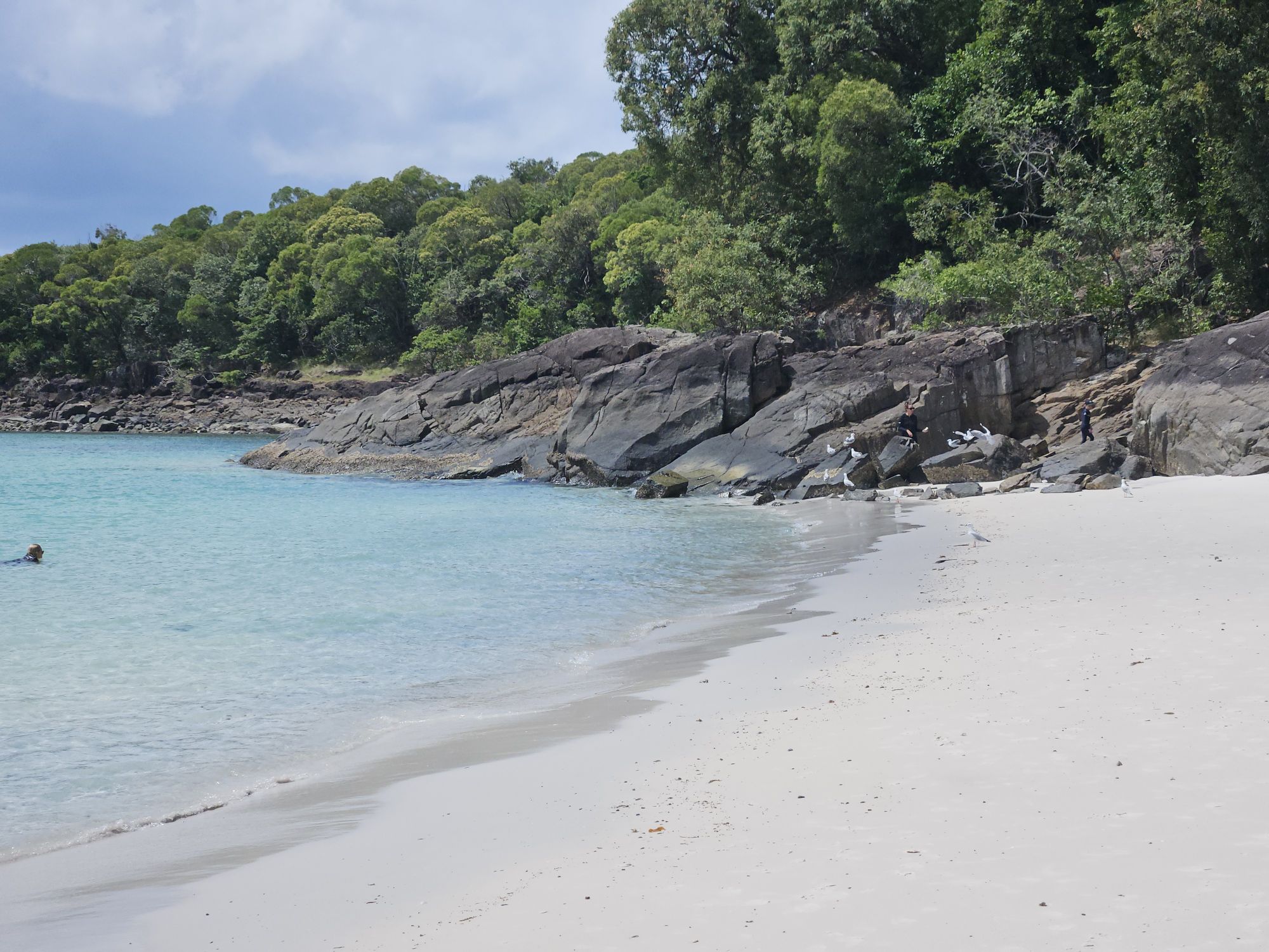 Nach dem morgendlichen Strandbesuch gab es Mittagessen auf dem Boot, dort plauderten wir nett mit den Mitreisenden. Unter anderem mit einem Paar aus England, die vor zwanzig Jahren ueber ein Work-and-Travel Visum ins Land kamen und hier hängen geblieben sind. Jetzt leben sie mit ihren Kindern in Melbourne. Da kommt man ja glatt auf Ideen 😉