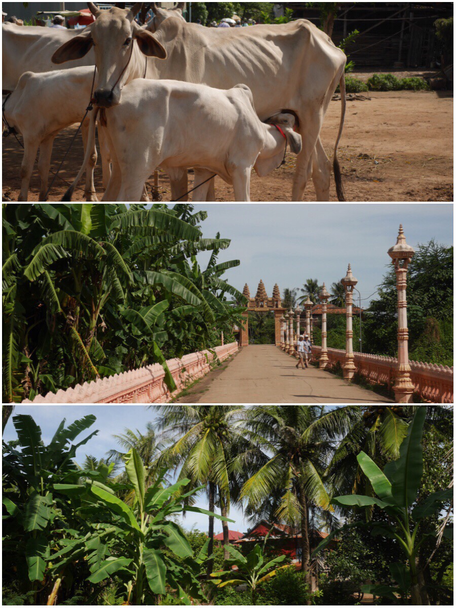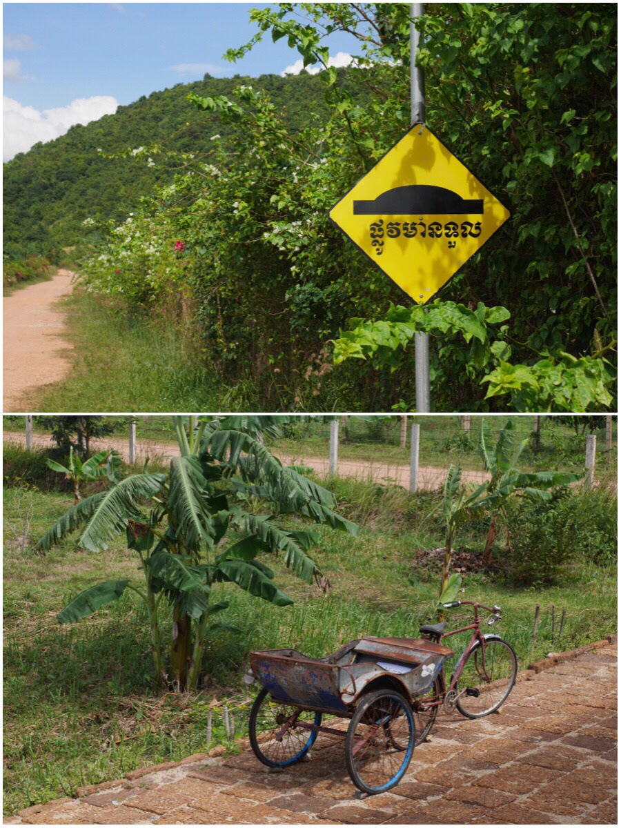 Um Punkt 9.00 Uhr holte er uns ab. Er war etwas besorgt, denn es sprach sich rum im Hotel, dass die Madame aus Deutschland etwas angeschlagen war. Aber ich versicherte ihm, das alles ok sei und wir fuhren los. Erst ging es ein paar Kilometer auf schlaglochreicher geteerter Straße stadtauswärts, bevor es so richtig tief in die ländliche Umgebung von Kampot ging. Von hier an, gab es nur noch sehr schlaglochintensive unbefestigte Wege, die ich einen Tag vorher sicher nicht gut ertragen hätte. Aber es war kein Problem und wir genossen die Fahrt durch die Dörfer.