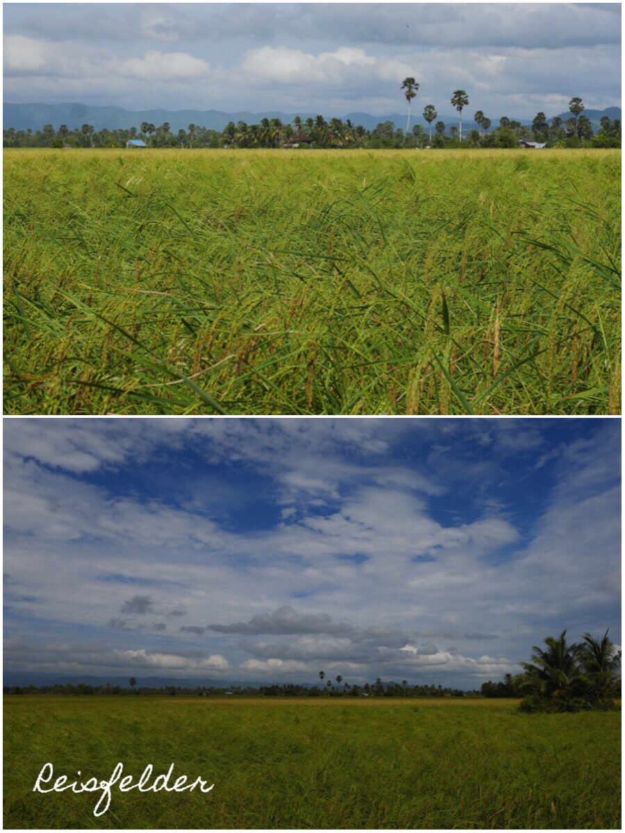 Ups, jetzt bin ich Vom Wege angekommen, unser Fahrer glücklicherweise nicht und wir stoppten an einem der Reisfelder. Wir bekamen alles über den Reisanbau erklärt, und dass auch hier die Ochsenkarren auch langsam von Maschinen abgelöst werden, zumindest was das Pflügen angeht. Die Reisernte geschieht allerdings meistens noch in aufwändiger Handarbeit.