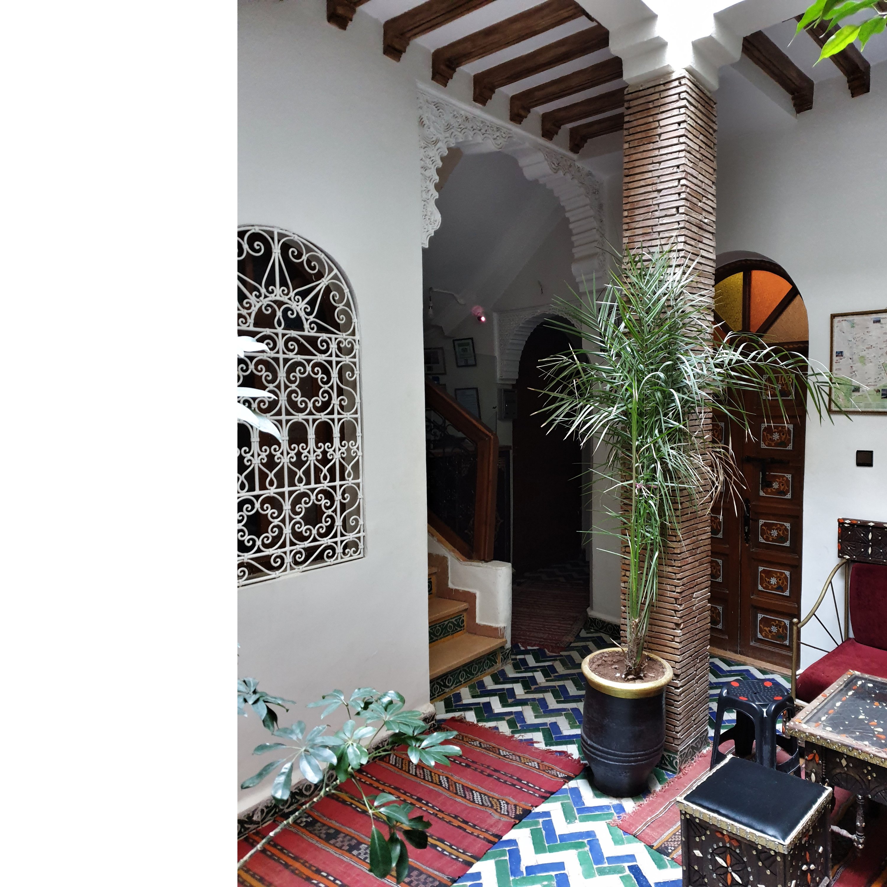 Das Hotel liegt außerhalb der Medina und das Viertel ist ein Gegensatz zu den verwinkelten Gassen der Altstadt. Direkt um die Ecke ist ein grosses modernes Einkaufszentrum mit einem Supermarkt, wo keine Wünsche offen bleiben. Tolle kleine Läden und zahlreiche Restaurants, eine quirlige Stadtatmosphäre ergeben ein anderes Gesamtbild von Marrakesh und wir freuen uns, diese Seite auch kennenzulernen.