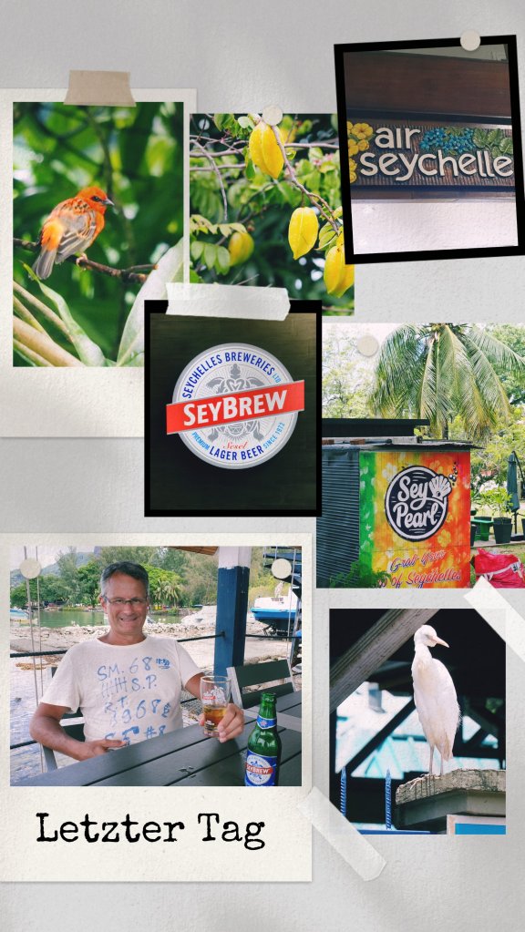 Es war Muttertag auf den Seychellen und alle Mütter wurden gebeten, nach vorne zu kommen und sich ein kleines Geschenk abzuholen. Kai und ich schauten zu, wie die Frauen nach und nach aufstanden und nach vorne gingen. Einige Personen um uns herum schauten zu mir herüber und die Dame neben mir lächelte freundlich und frage mich, ob ich auch Mutter sei. Ich verneinte und sagte, daß ich es gerne gewesen wäre. Da war es dann um mich geschehen. Ich heulte wie ein Schloßhund. Es war eine Mischung aus Rührung und Trauer, Trauer um die Kinder, die ich nicht habe. Meine Sitznachbarin war hochschwanger, sie nahm mich in den Arm und tröstete mich, Ihre kleine Tochter lächelte mich an und teilte eins Ihrer Bonbons mit mir.