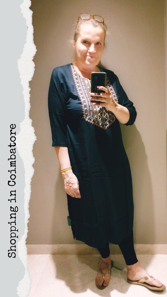 Eine Leserin des Blogs hatte mich spontan angeschrieben, ob ich ihr nicht auch so ein buntes Gewand mit nach Hause bringen könnte. Nachdem sich also dieses spontane Shoppingfenster ergeben hatte und ich nochmals einen Laden mit den buntesten Kurtas fand, rief ich sie spontan per Videochat an und wir suchten gemeinsam aus.
