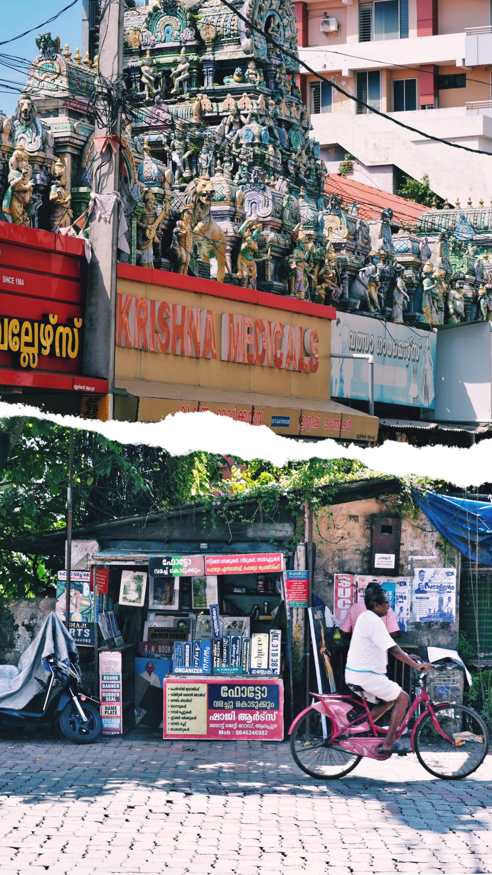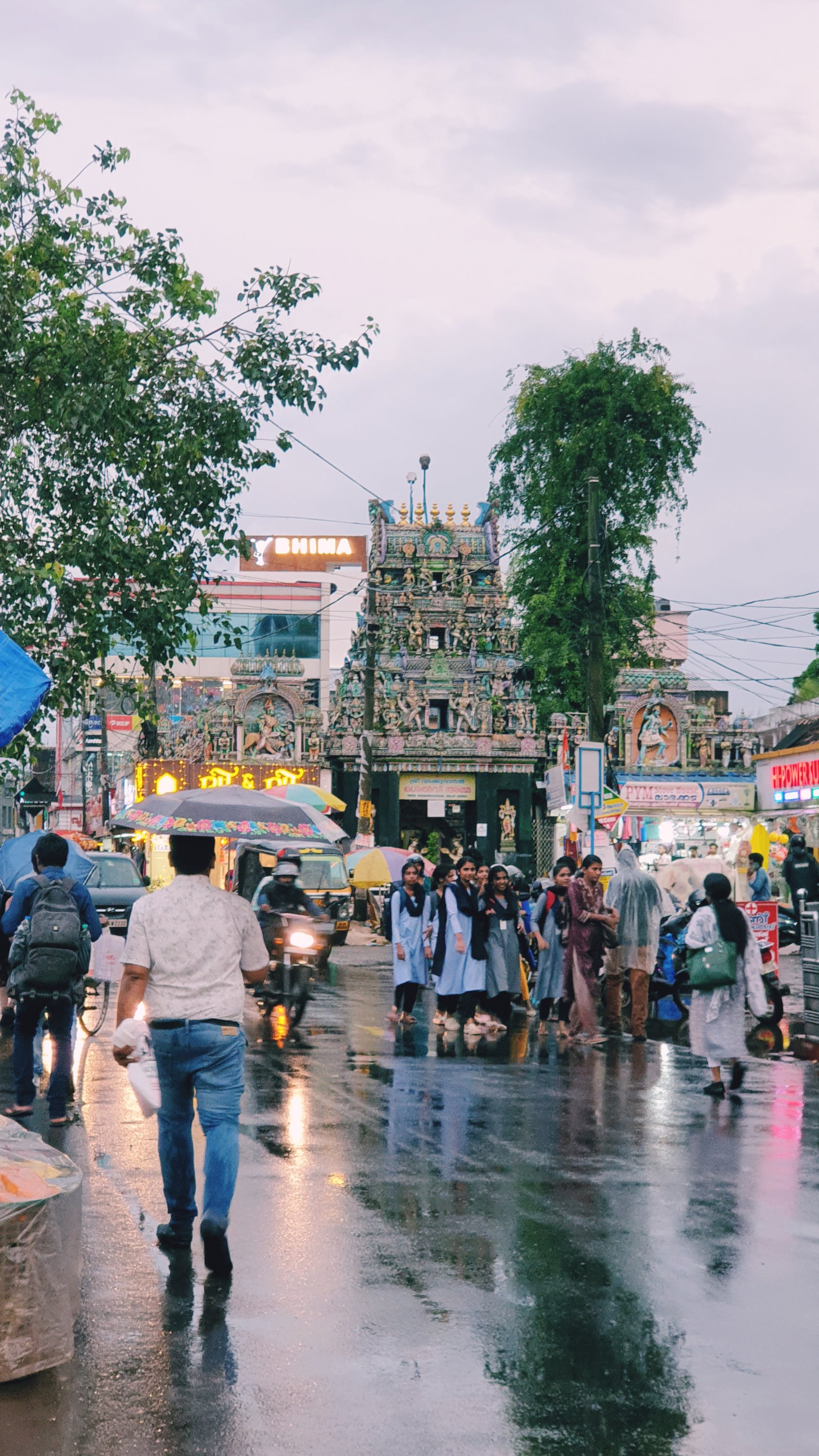 Fuer den Nachmittag wollten wir fuer unseren letzten Abend in Indien noch mal nach Alleppey fahren. Leider war weit und breit keine Riksha in Sicht und auch eine Bestellung per Uber hatte keinen Erfolg. Irgendwann hatten wir aber Glueck, denn ein Fahrer brachte gerade zwei andere Touristinnen ins Hotel. So konnten wir schnell tauschen, bevor erneut der abendliche sintflutartige Regen einsetzte.