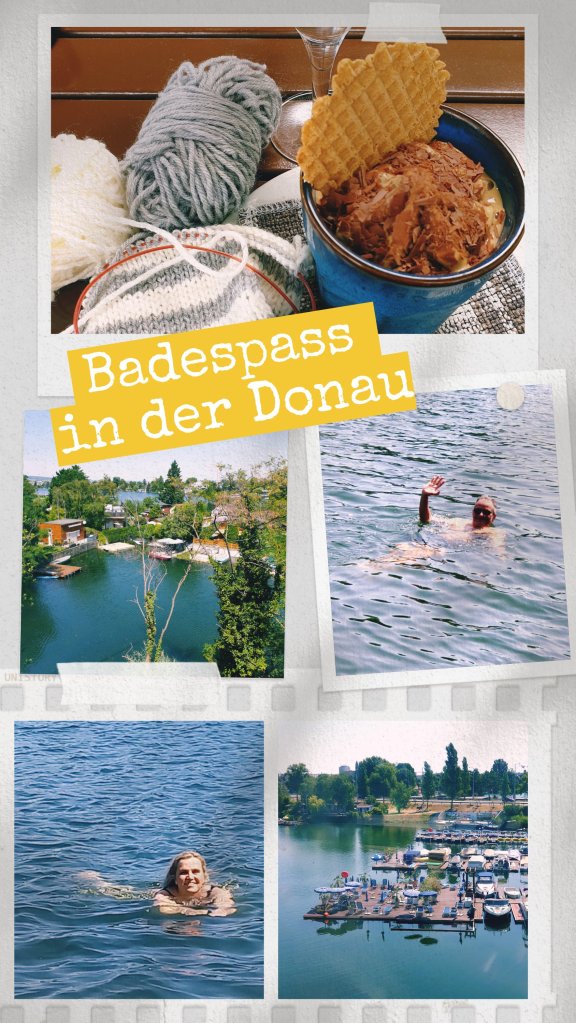 Nach dem Fruehstueck packten wir die Badesachen ein und fuhren mit der U-Bahn zur Station „Alte Donau“. Schon vom Gleis aus konnte man das viele Wasser sehen und die zahlreichen Bootsanleger entlang der Ufer. Wir waren total überrascht, haetten wir doch in einer Großstadt wie Wien niemals so viel Wasser erwartet. Wie toll, fast wie eine Seenlandschaft liegt der Seitenarm der Donau vor uns.