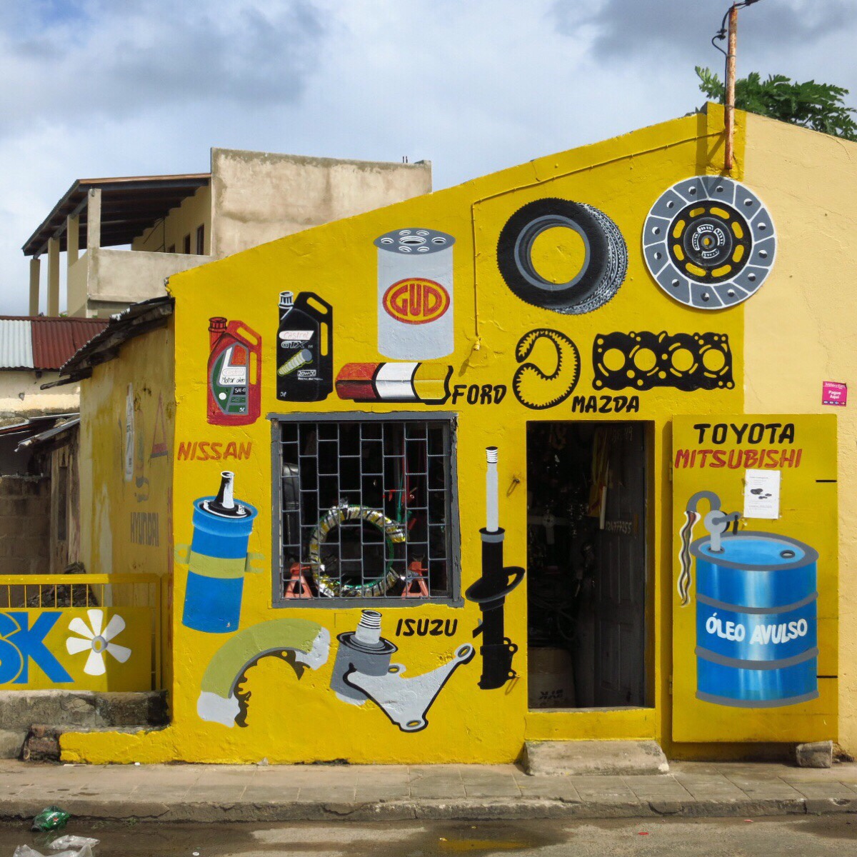 Hier in Mozambique und wahrscheinlich in vielen Regionen Afrikas gibt es noch eine Berufsgattung, die bei uns schon in der Art ausgestorben ist. Den Reklamemaler. Hier gibt es kaum Schilder oder Plakate, stattdessen werden die Werbeinhalte in bunten Farben auf die Häuserwände gepinselt. Das ist auf eine ganz eigene Art und weise sehr fotogen.